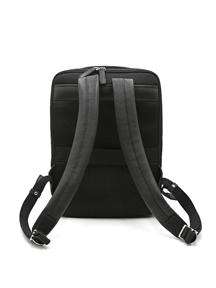 【本革使用】リュック LWG認証レザー 背面メッシュ PC収納可 通年(ブラック)