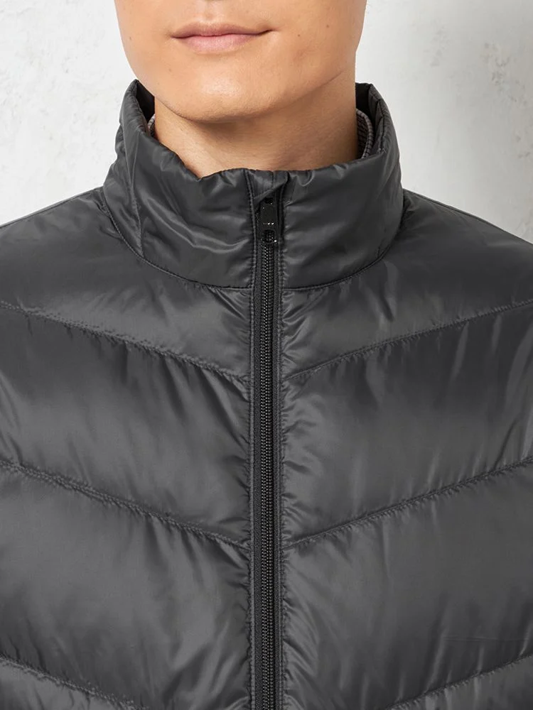 冷えやすい首元をカバーできるスタンドカラーを採用しています。