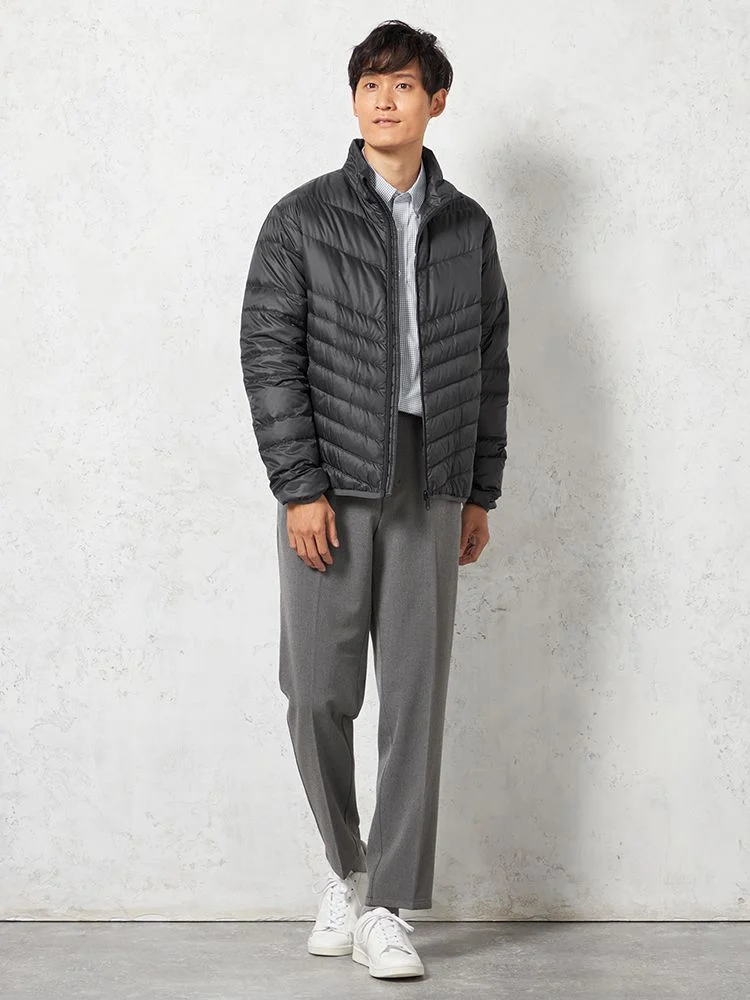 デイリーコーディネートにも重宝するシンプルなダウンブルゾン。