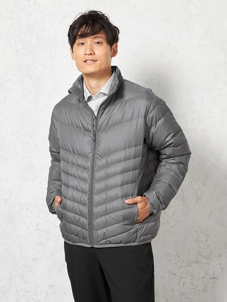 【ウォッシャブル】ダウンブルゾン スタンドカラー【軽量/撥水/保温】 無地 カジュアルアウター リッケンバッカー 秋冬(C.グレー)