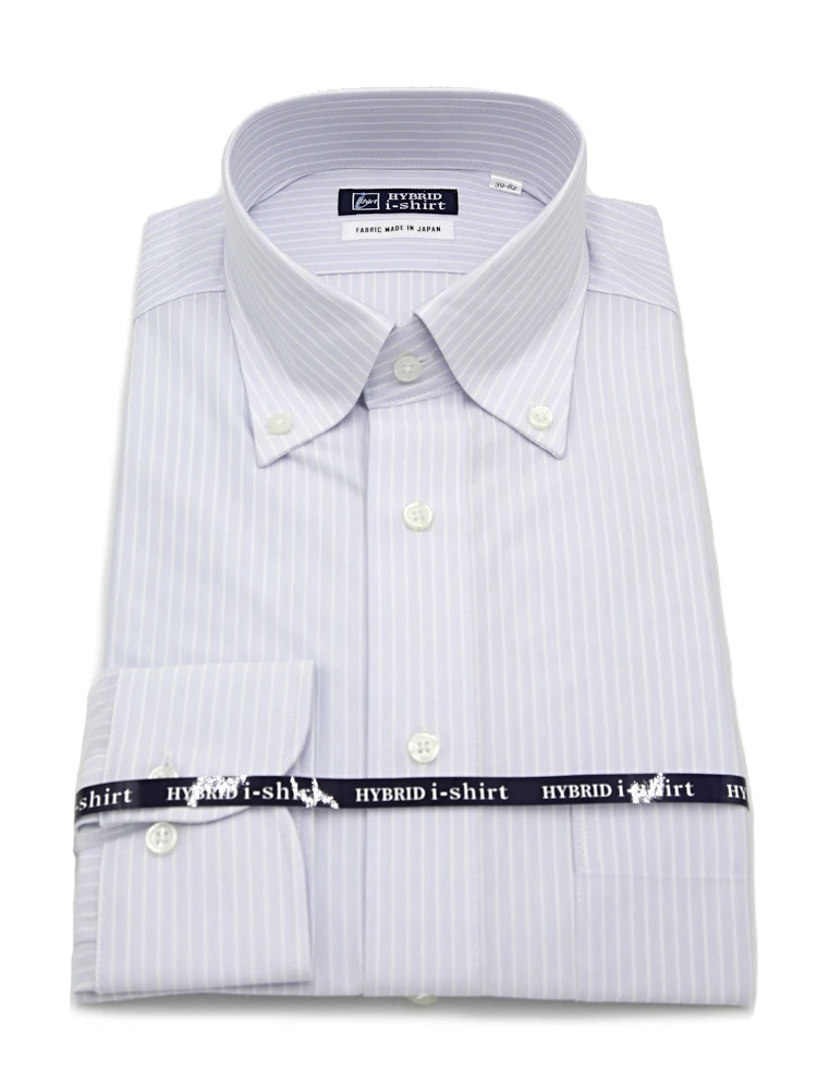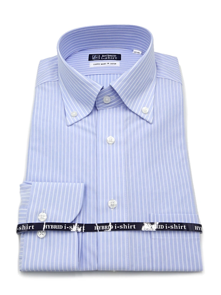 【ハイブリッドアイシャツ】長袖ワイシャツボタンダウン形態安定ストレッチマイクロストライプ通年
