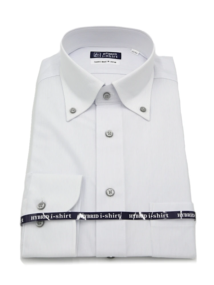 綿素材ワイシャツの風合いを表現した【ハイブリッドアイシャツ】。
