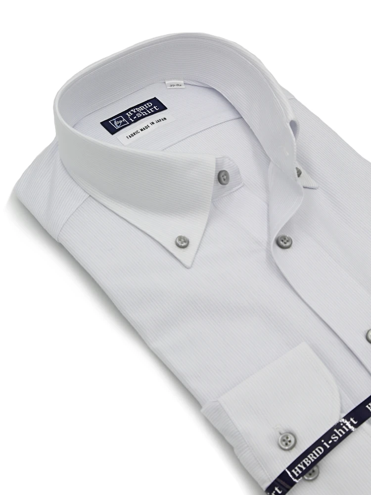 【ハイブリッドアイシャツ】長袖ワイシャツボタンダウン綿混素材形態安定無地i-shirt通年