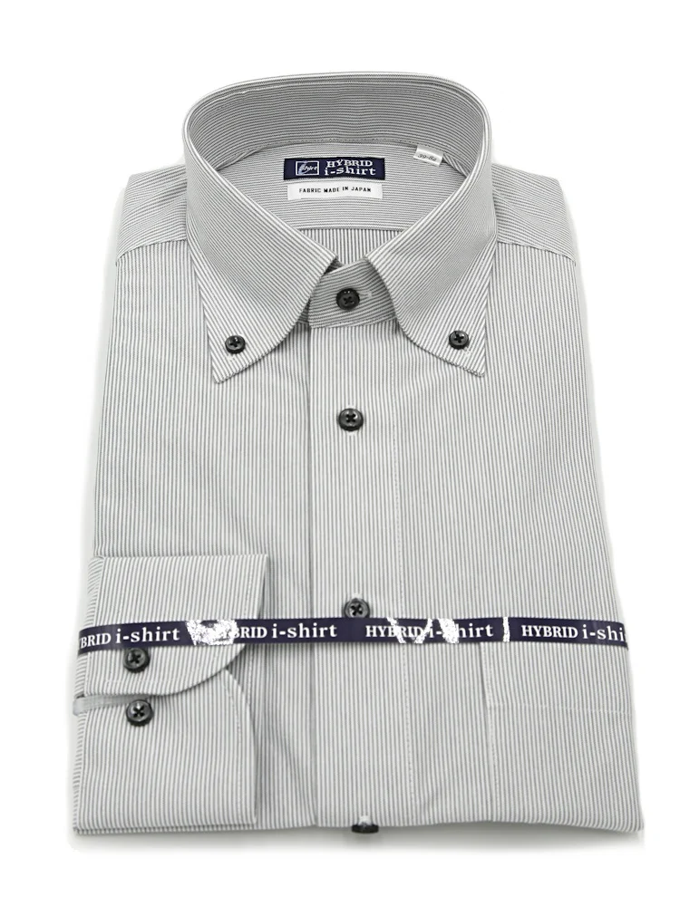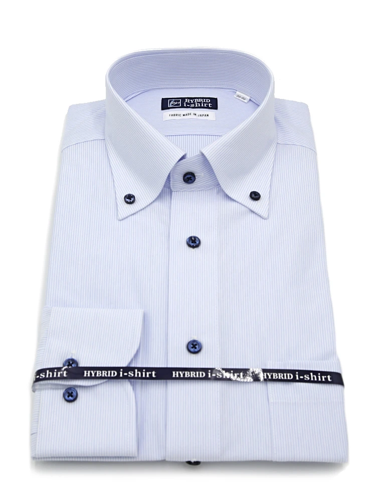 【ハイブリッドアイシャツ】長袖ワイシャツボタンダウン綿混素材形態安定ピンストライプi-shirt通年