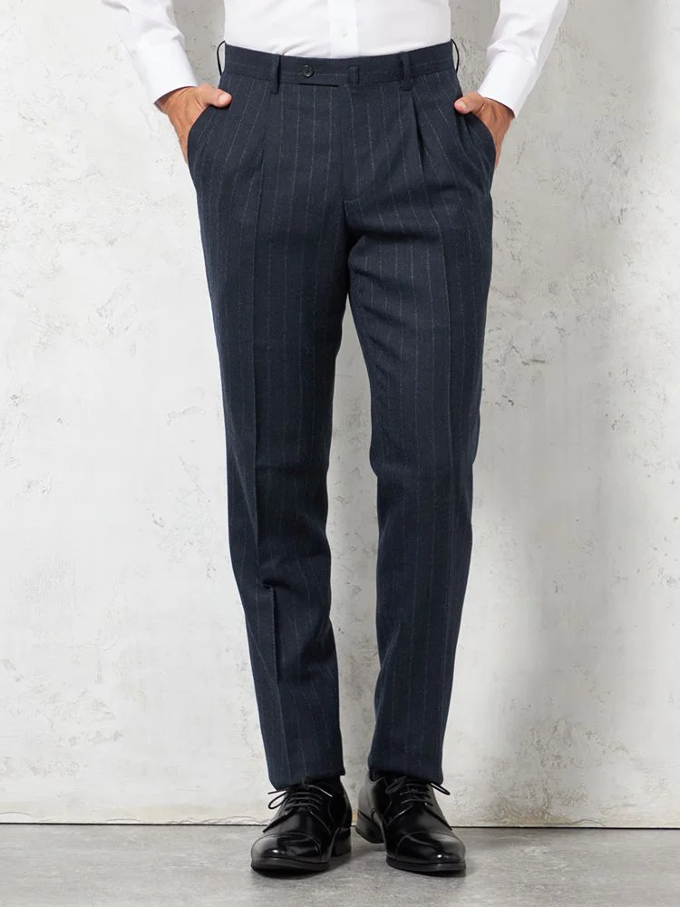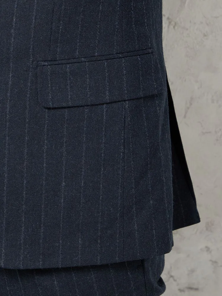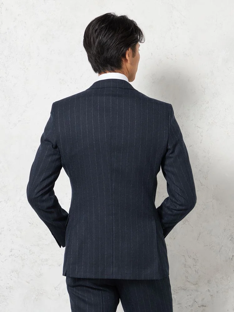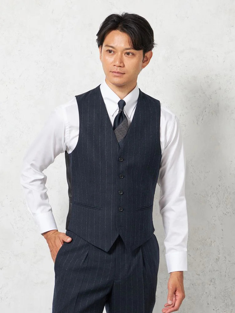 【上下ウォッシャブル】スリーピーススーツ 2つボタン 軽量 ミルドストレッチ チョークストライプ リッケンバッカー 秋冬