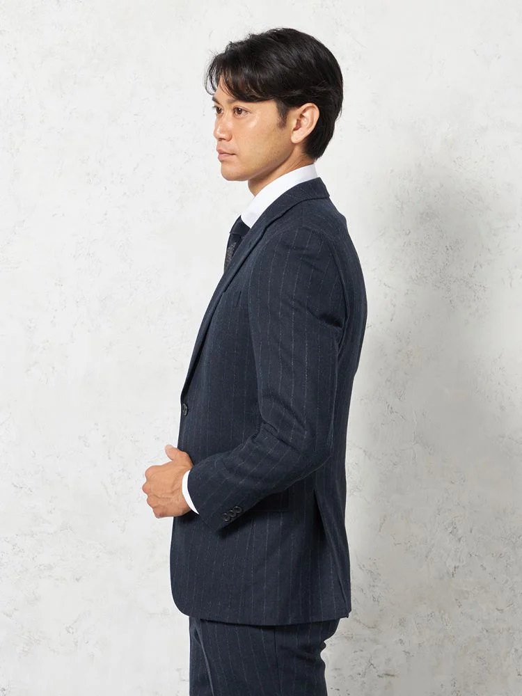 【即納】スーツ2つボタン【WEB限定】上下ウォッシャブルネイビーストライプ