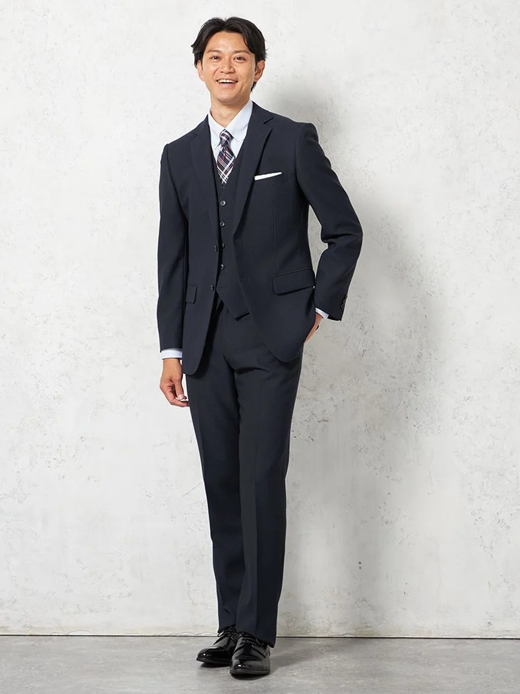 【即納】スリーピーススーツ 2つボタン【WEB限定】上下ウォッシャブル 小柄 ネイビー 秋冬