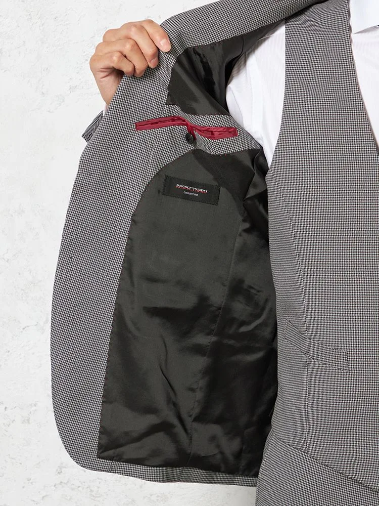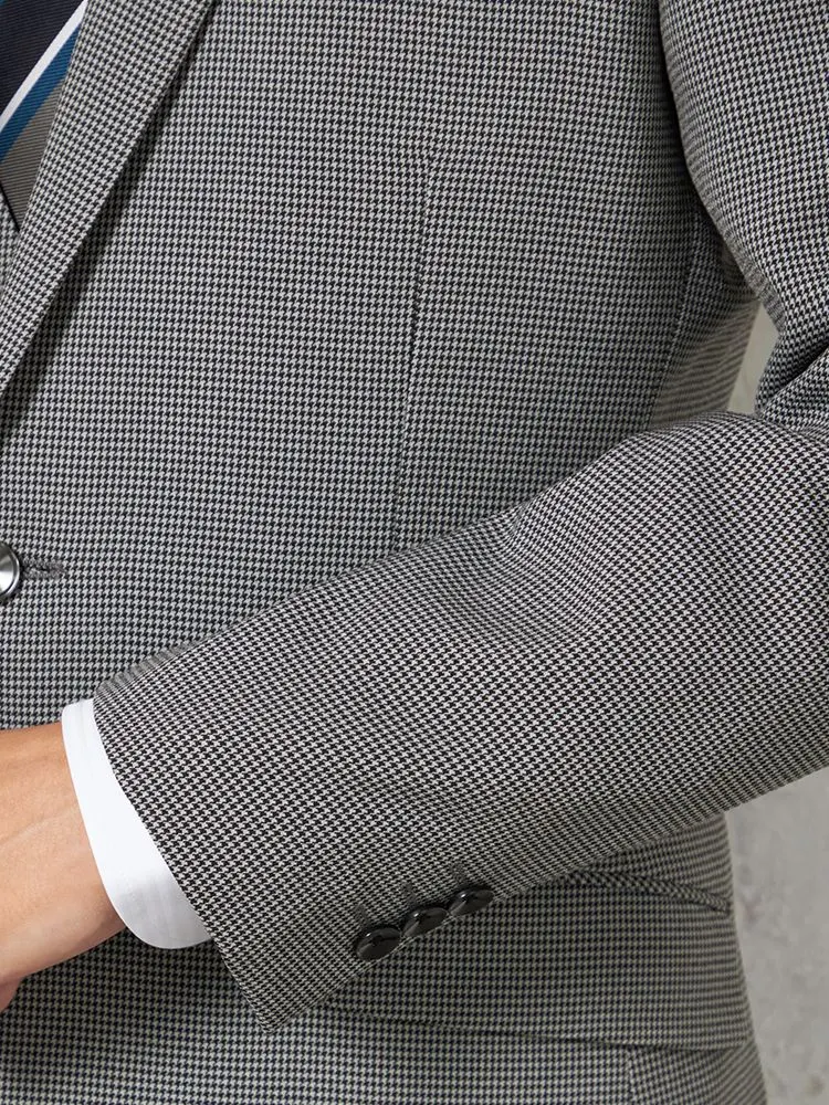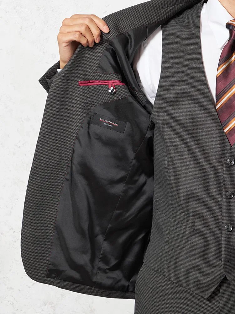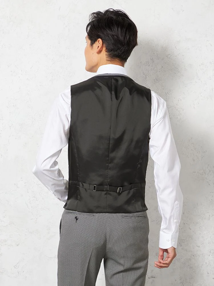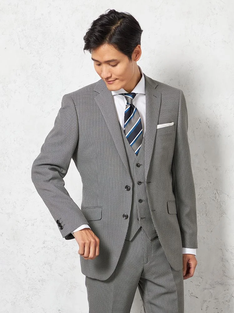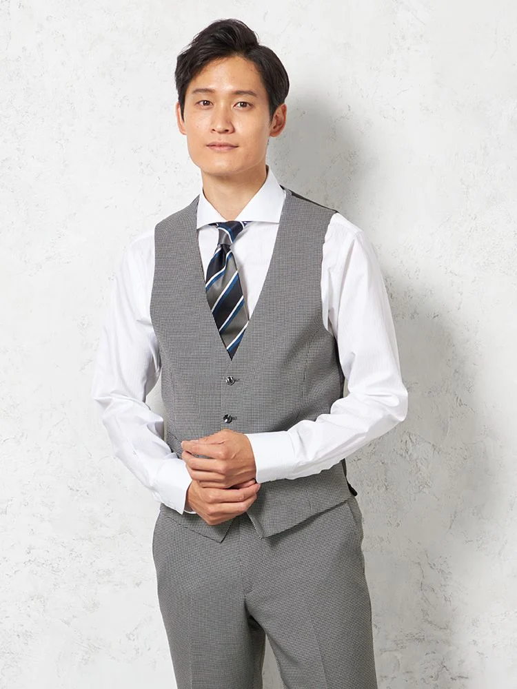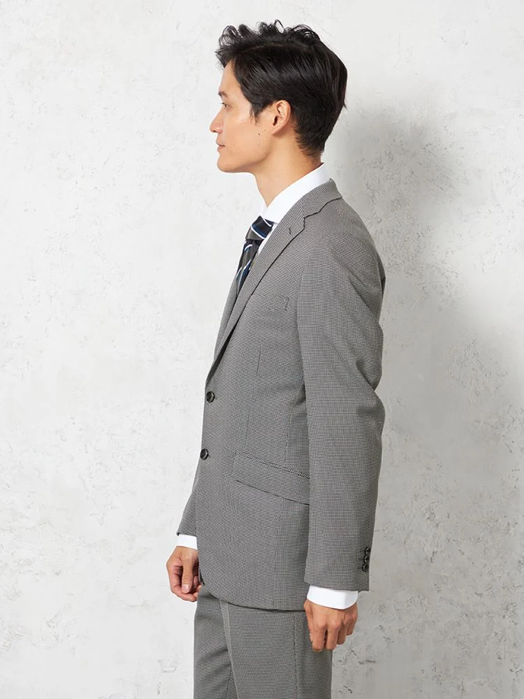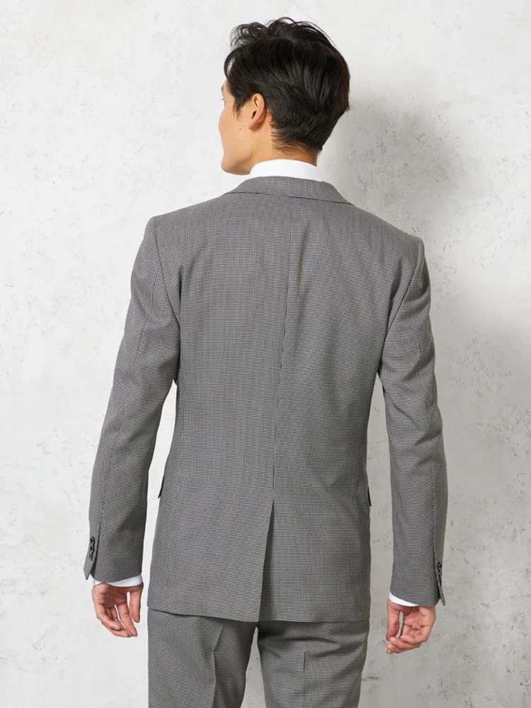 【上下ウォッシャブル】スリーピーススーツ 2つボタン ウールライク 千鳥格子 nero 秋冬【スリムデザイン】(M.グレー)