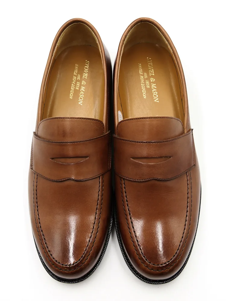【日本製】ビジネスシューズ コインローファー ストーベルアンドメイソン 通年(ブラウン)