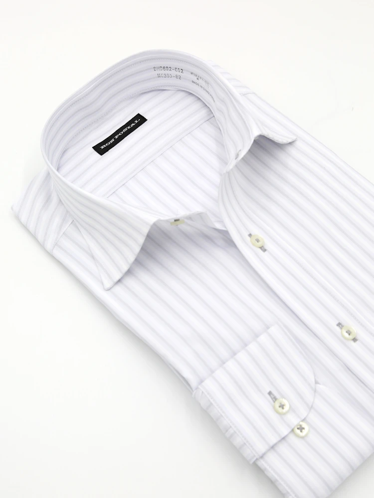 【ハイブリッドアイシャツ】長袖ワイシャツセミワイド形態安定ストレッチ杢調ワイドストライプ通年