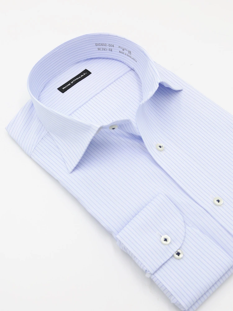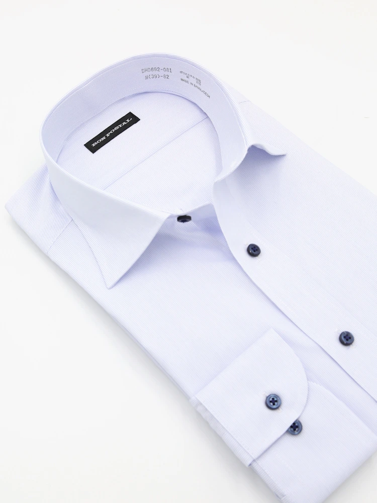 形態安定加工を施した、お手入れ簡単な長袖ワイシャツ。