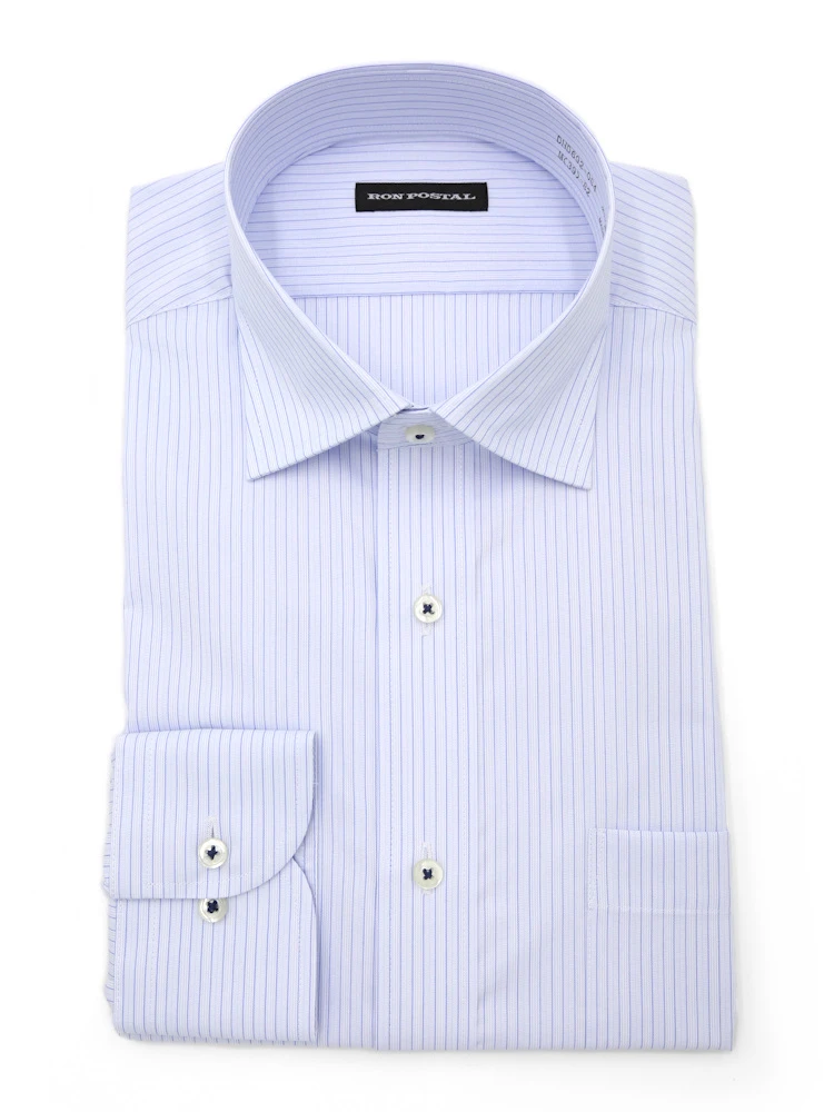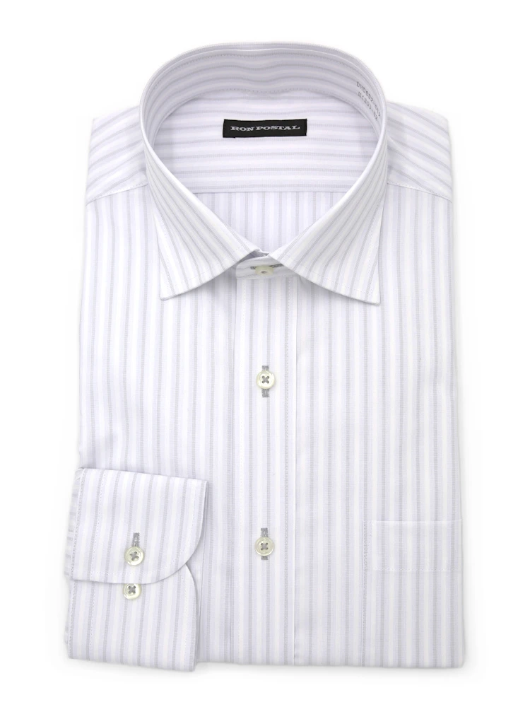 【形態安定】長袖 ワイシャツ セミワイド イージーケア ストライプ RON POSTAL 通年(L.グレー)