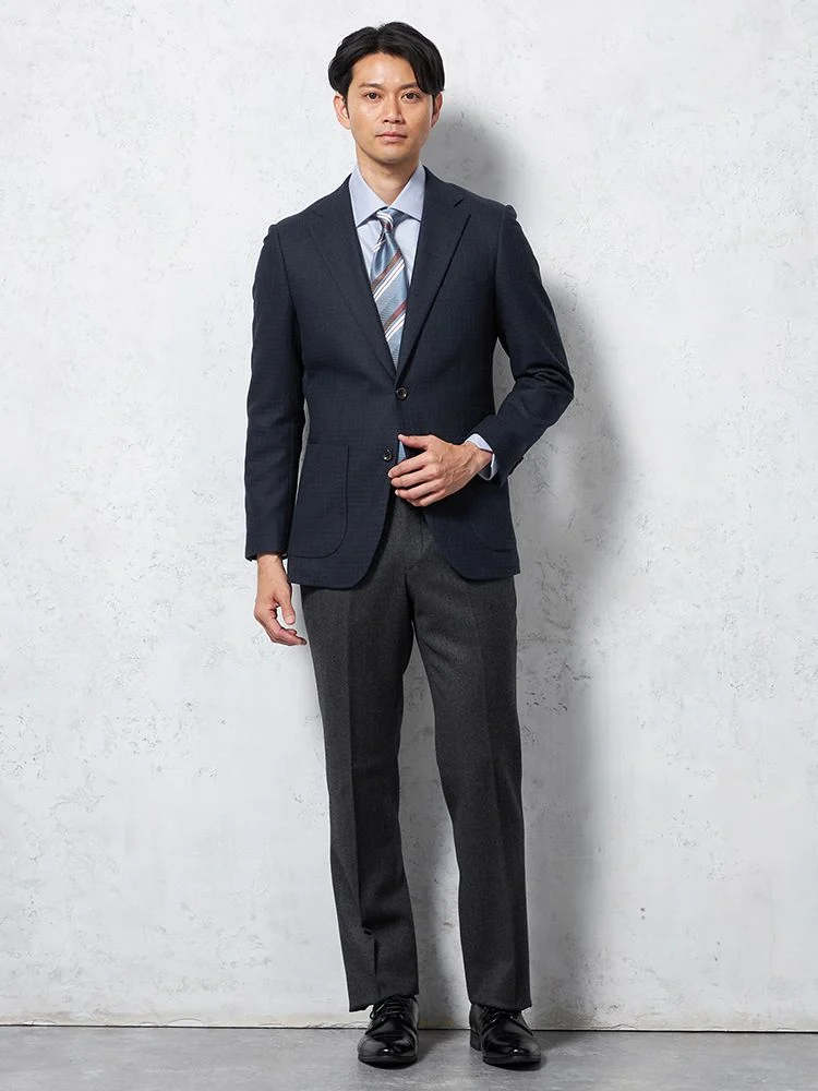 切り込みが2本のサイドベンツ仕様のアイテムです。クラシックでエレガントな印象を与えます。