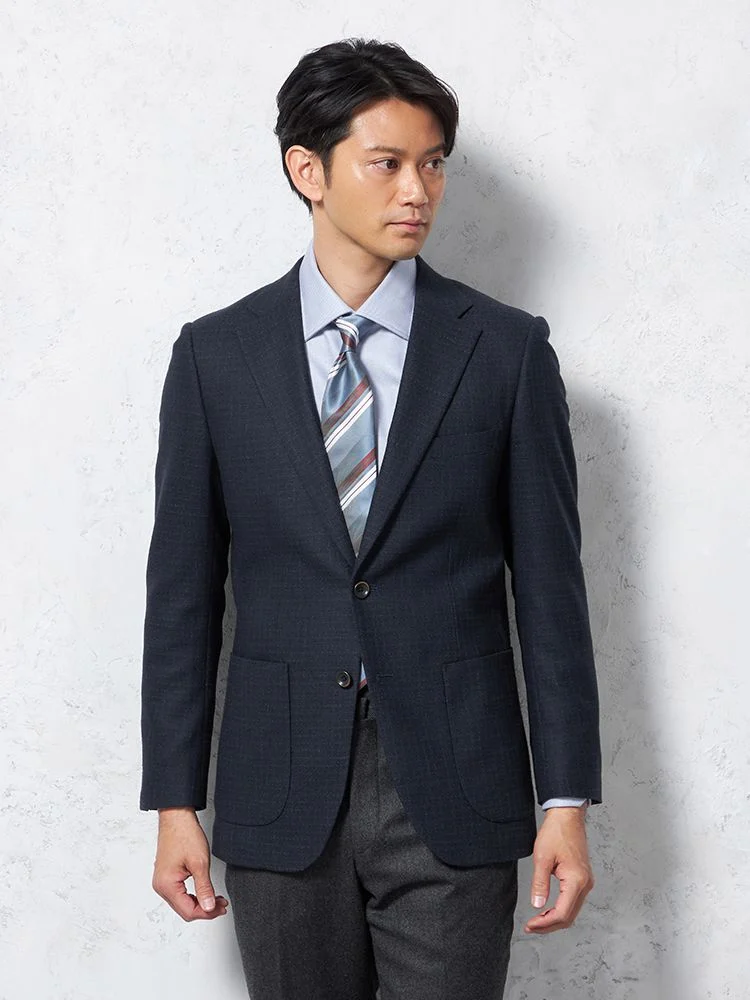 落ち着いたカラーをはじめ、パッチポケットやサイドベントがクラシカルな雰囲気です。
