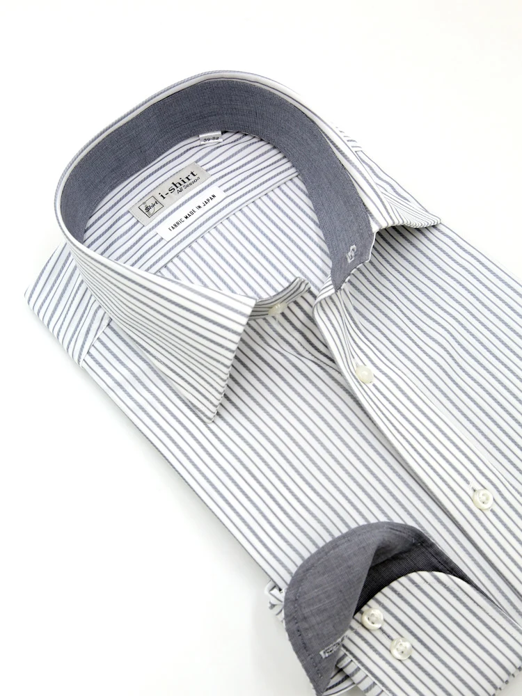 【完全ノーアイロン】アイシャツセミワイドストレッチ吸汗速乾織柄ストライプワイシャツi-shirt通年