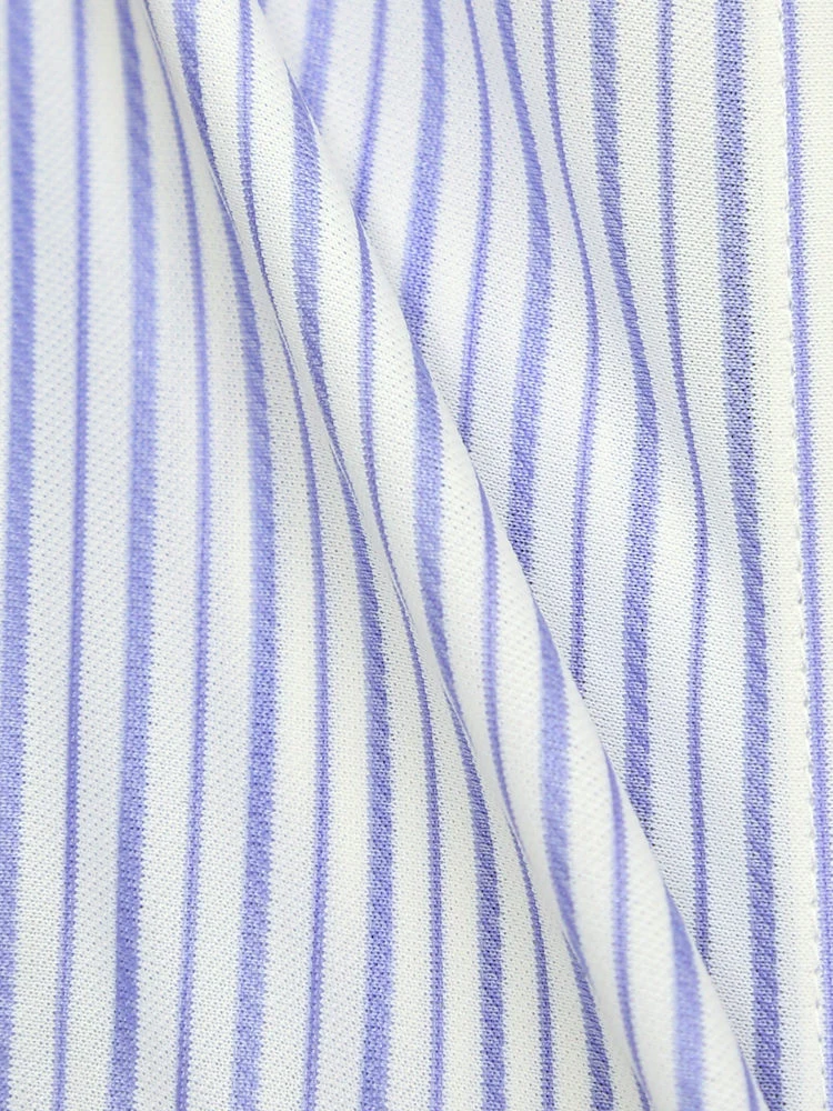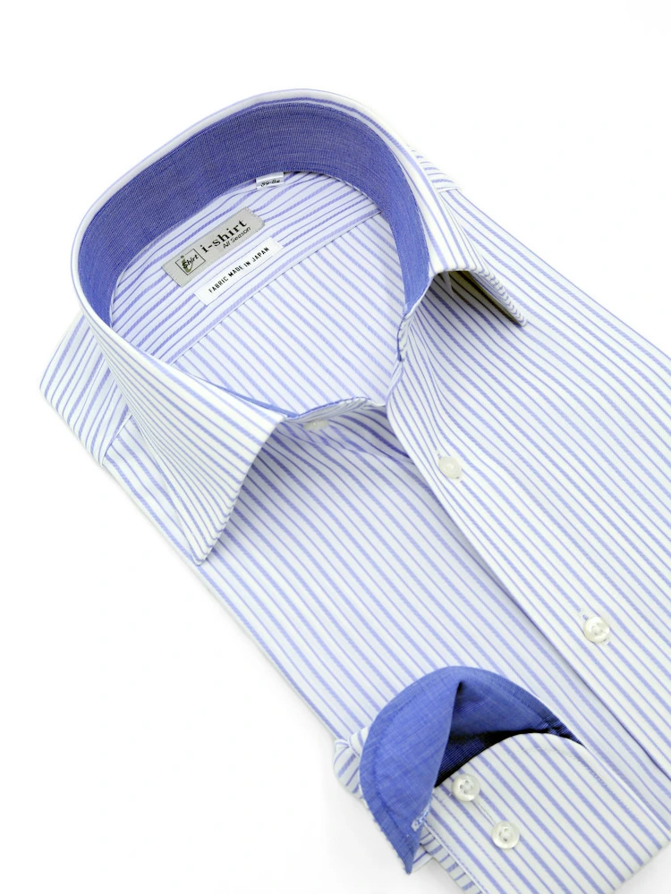 【完全ノーアイロン】長袖 アイシャツ セミワイド ストレッチ 吸水速乾 ストライプ ワイシャツ i-shirt 通年(サックス)