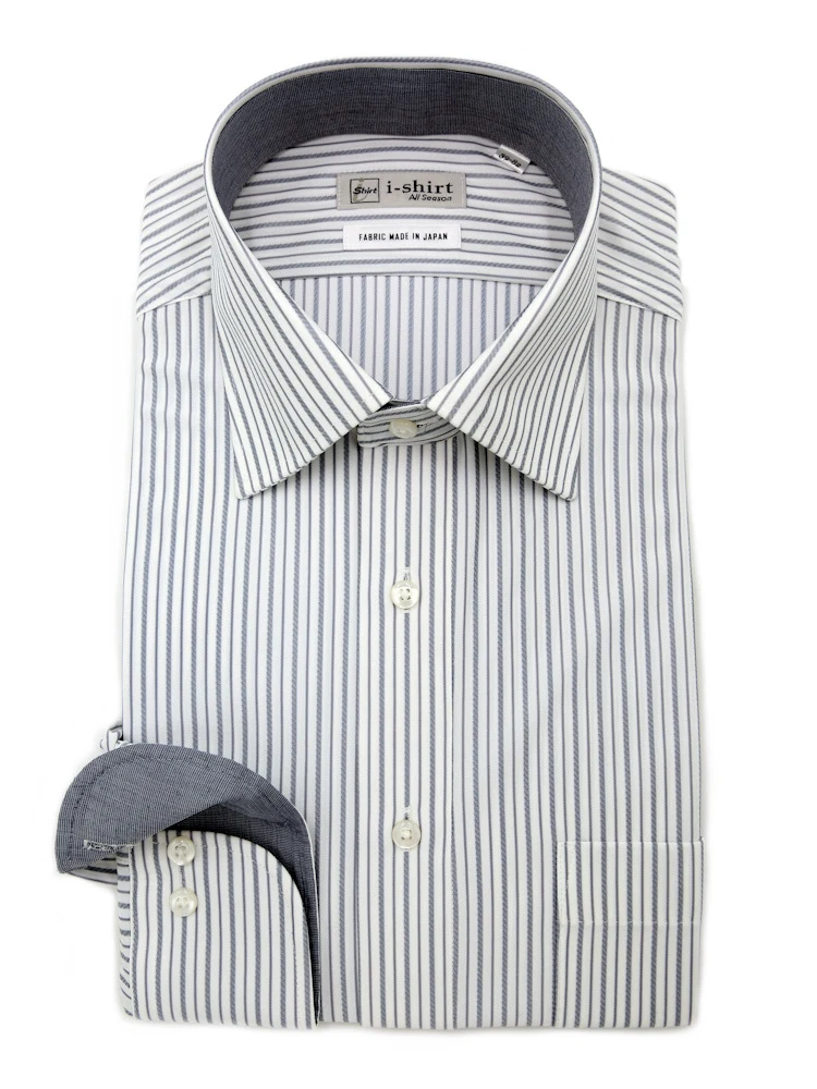 【即納】WEB限定【完全ノーアイロン】長袖アイシャツセミワイドストレッチシャドウストライプi-shirt通年