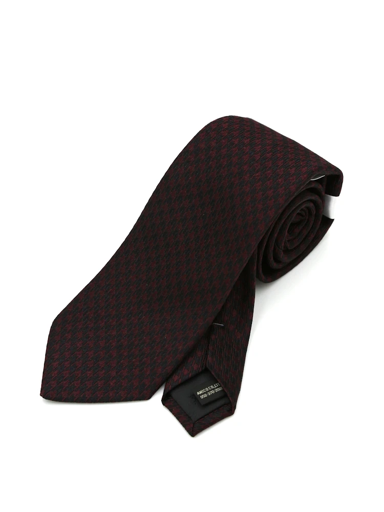 【シルク100%】ネクタイ レギュラー ブライダルテイスト 千鳥格子 ユミカツラ 通年(ワイン)