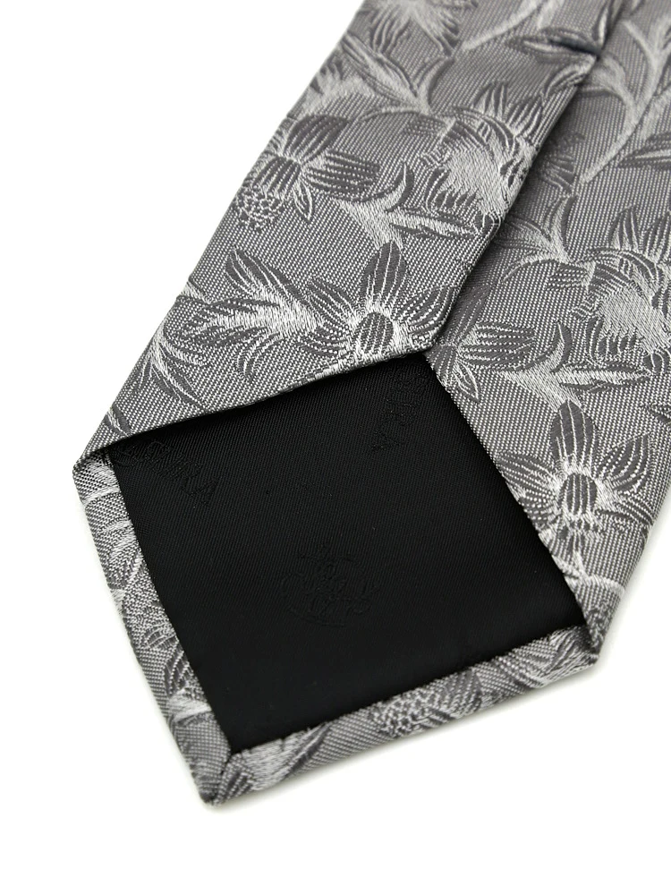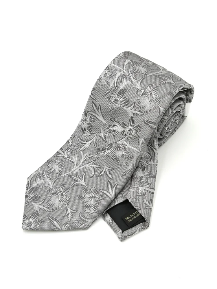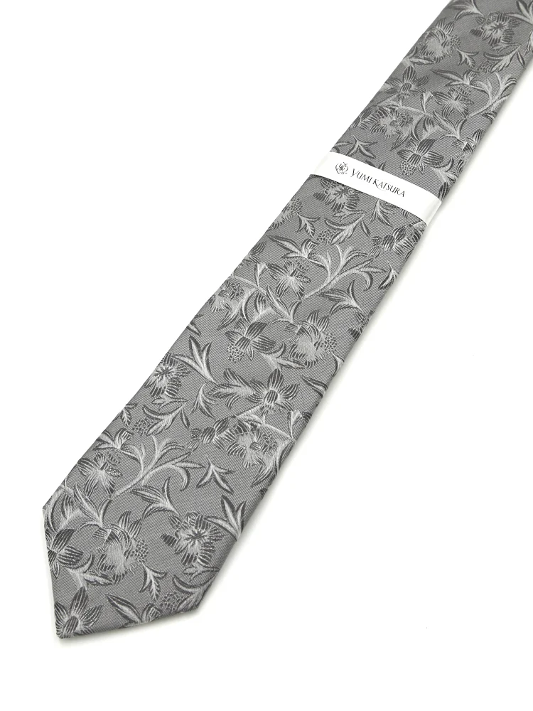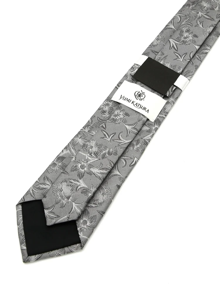 【シルク100%】ネクタイ レギュラー ブライダルテイスト フローラル ユミカツラ 通年(L.グレー)