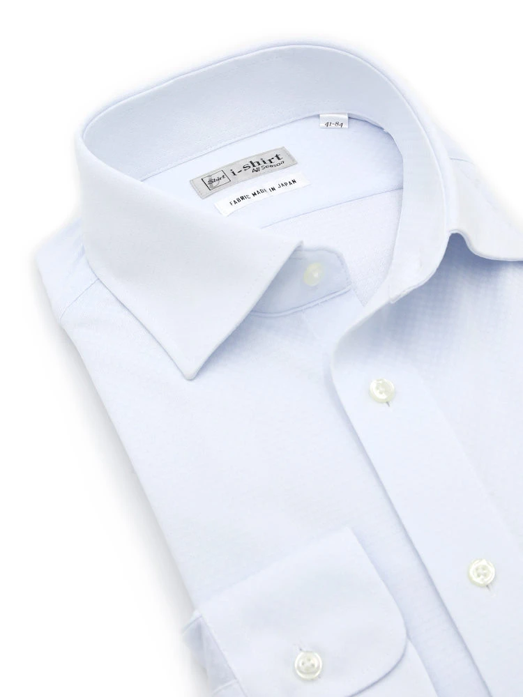 【完全ノーアイロン】アイシャツ セミワイド ストレッチ 吸汗速乾 織柄スクエア ワイシャツ i-shirt 通年(サックス)