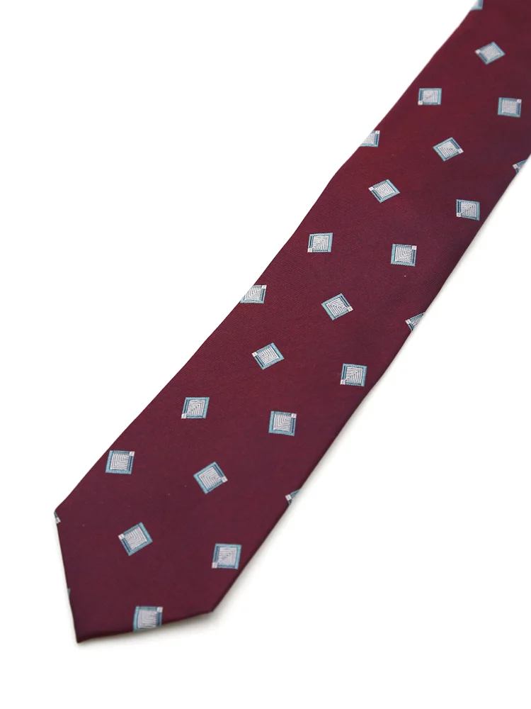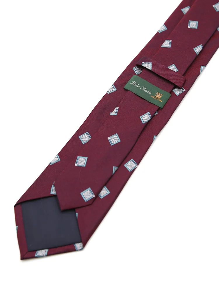 【シルク100%】ネクタイ レギュラー 小紋柄 リッケンバッカー(ワイン)