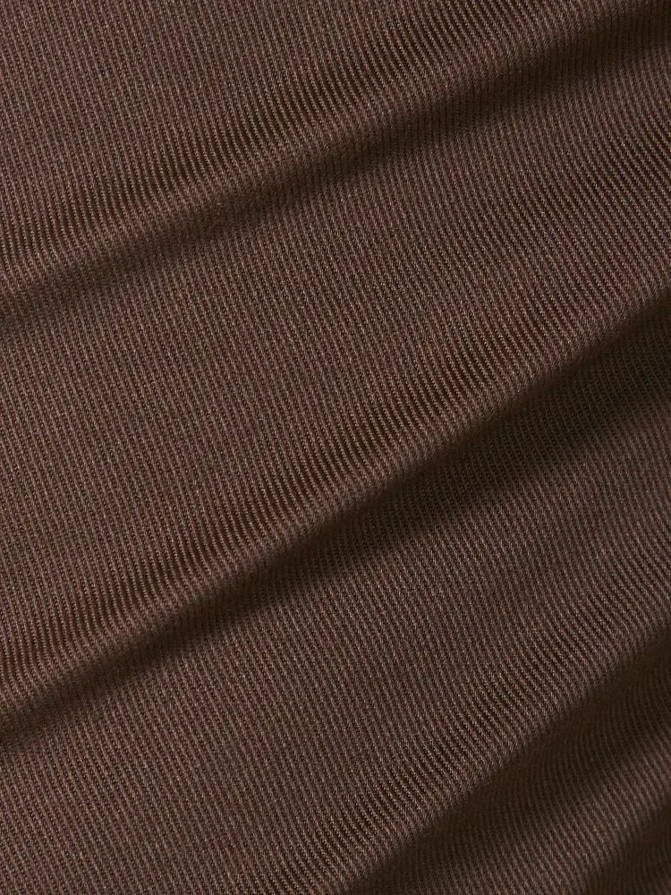 パンツの腰回りに生地の折り込みがなく、スッキリとしたシルエットを実現します。シンプルで洗練された印象を与え、すっきりとした着こなしが可能です。