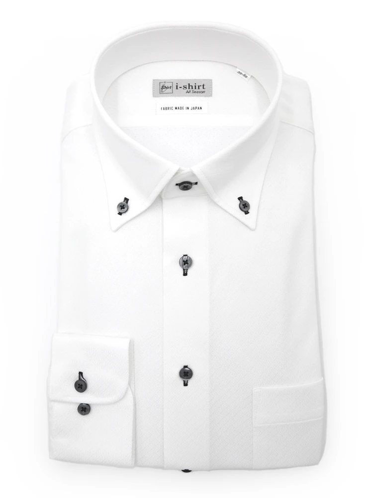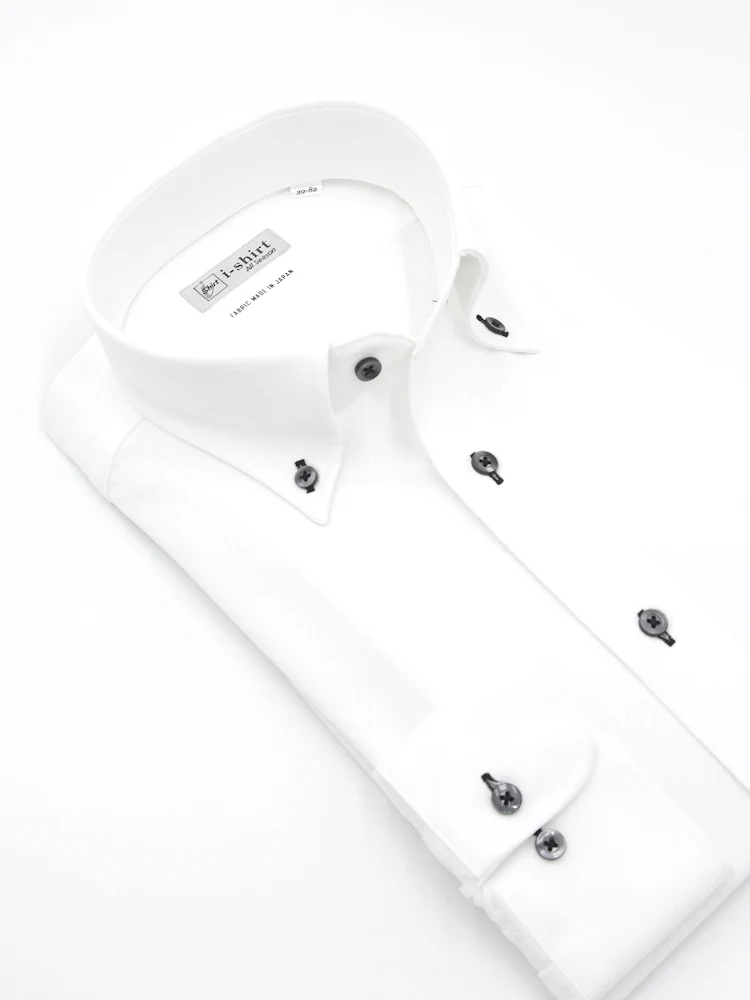 【完全ノーアイロン】長袖 アイシャツ ボタンダウン 吸水速乾 ストレッチ ダイヤ 織柄無地 ワイシャツ i-shirt 通年(ホワイト)