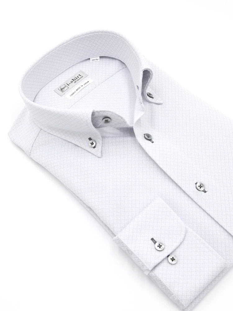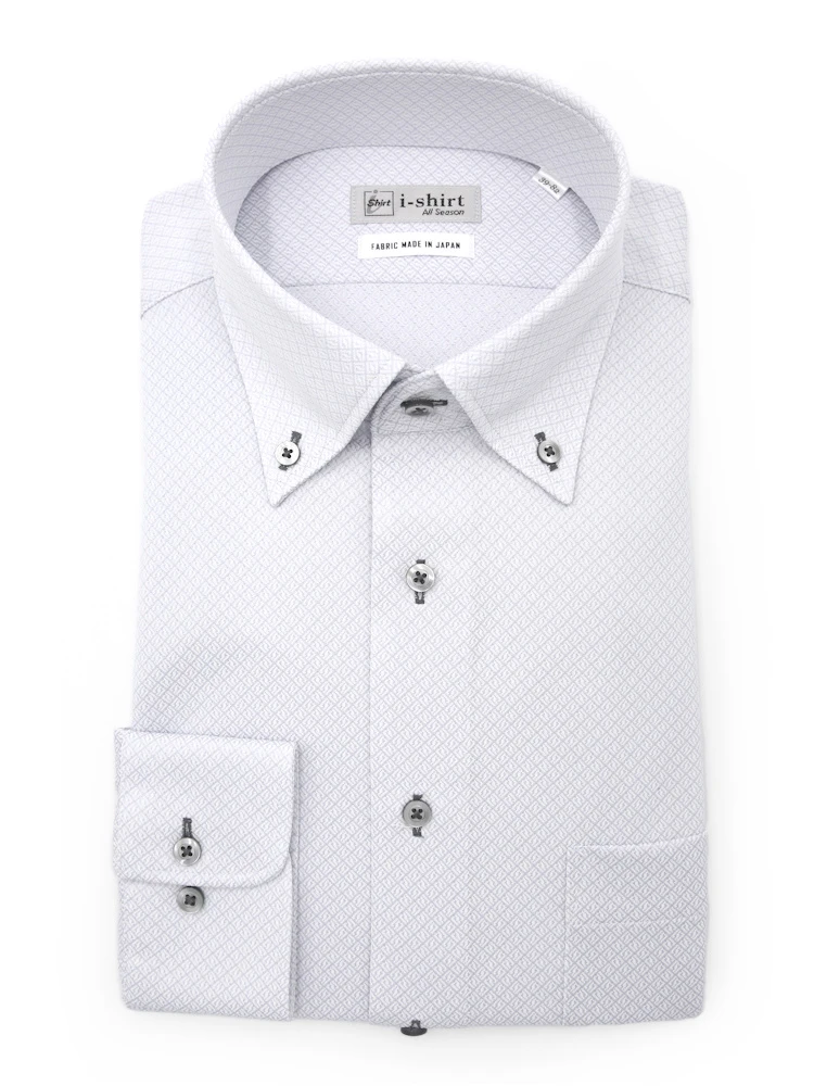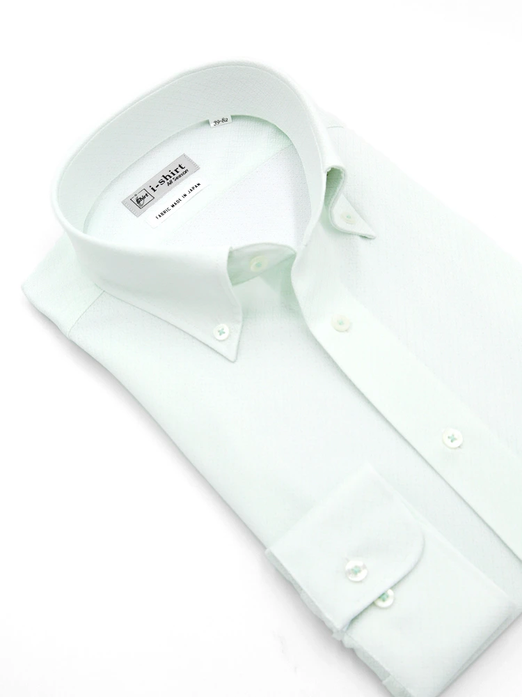 【形態安定】アイシャツ長袖ワイシャツボタンダウン織柄無地i-shirt通年