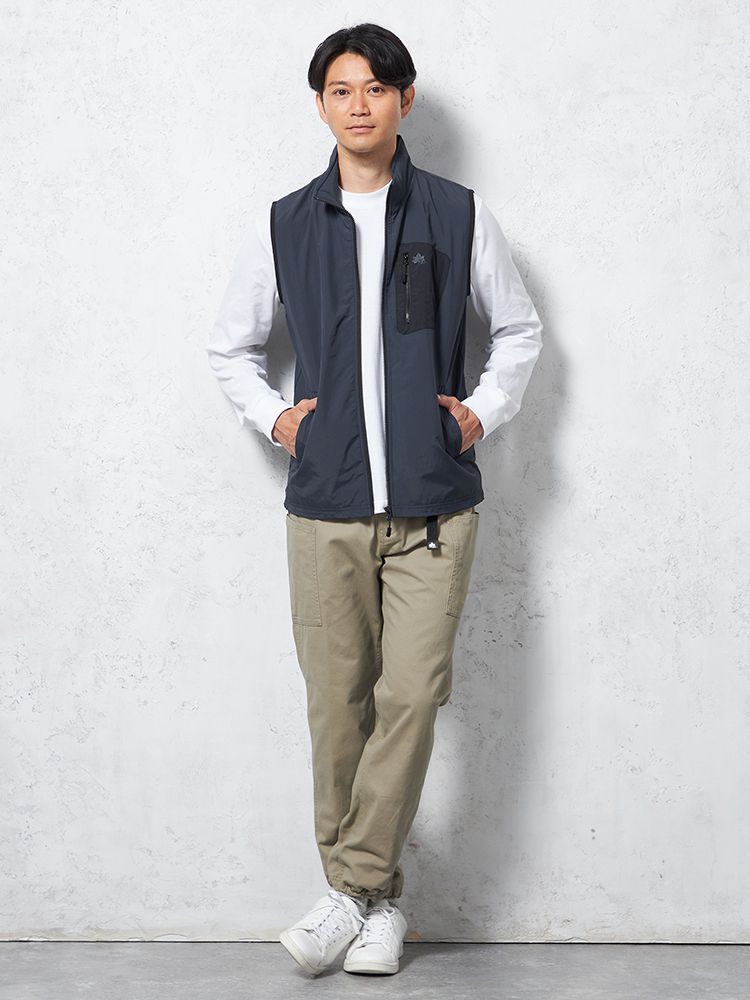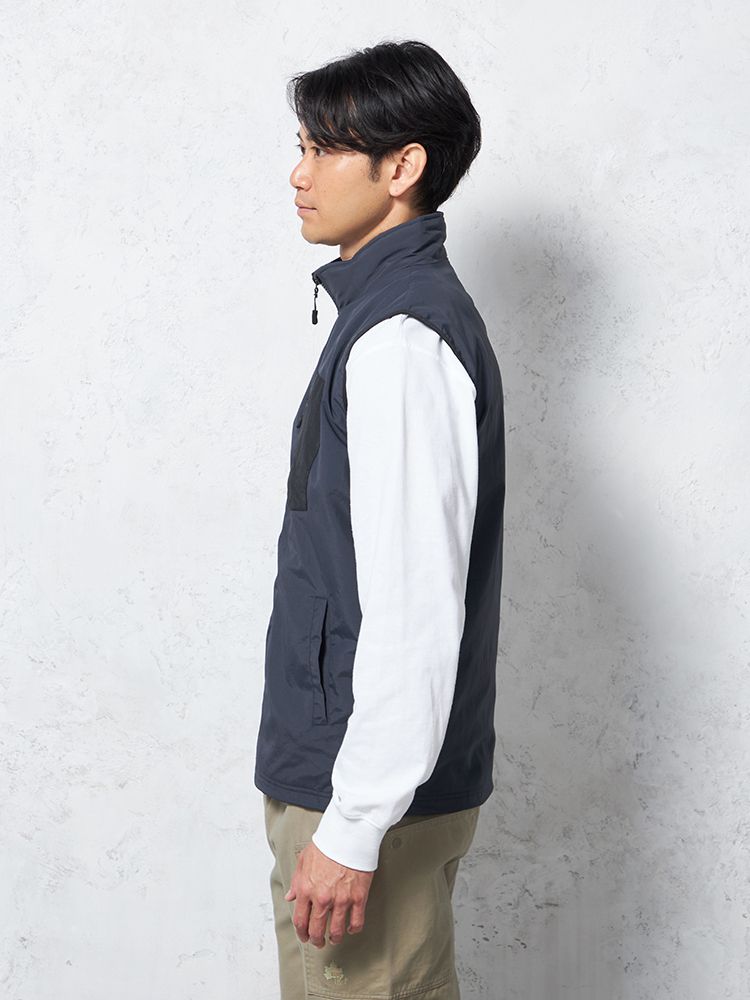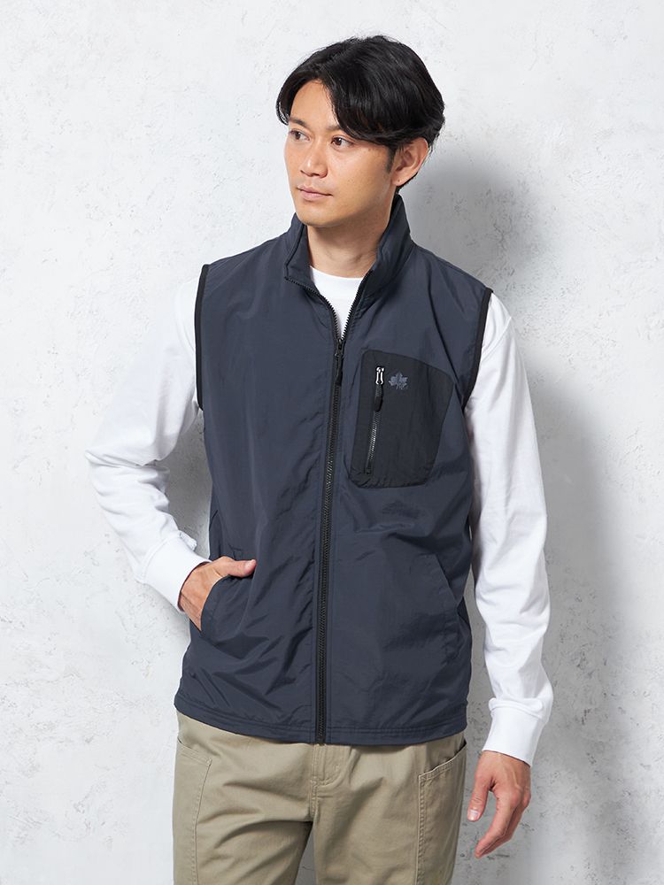 胸ポケットとパイピングの配色使いがポイントのベスト。