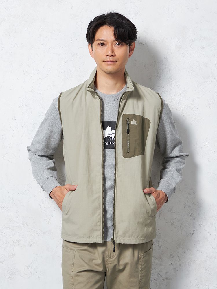 【LOGOS-ロゴス-】撥水加工 ナイロンタスラン 裏メッシュベスト 無地 カジュアルアウター(ベージュ)