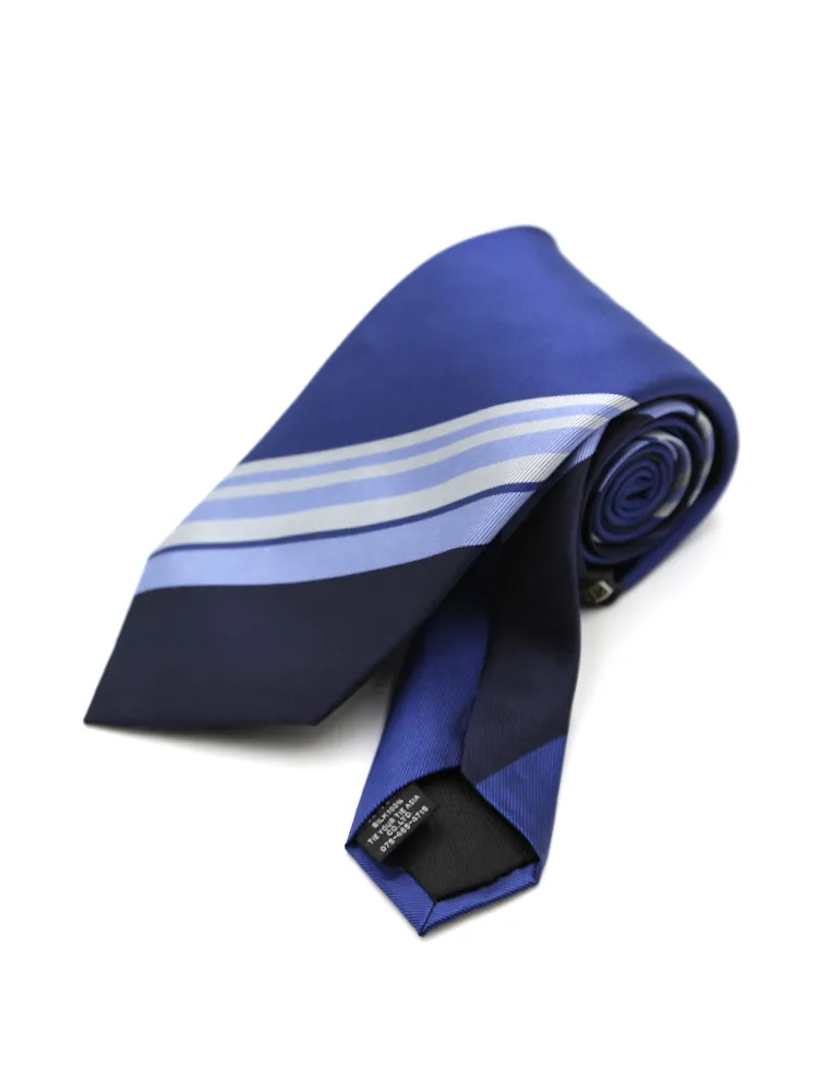 【シルク混】ネクタイレギュラーリクルートタイネイビーストライプnero通年