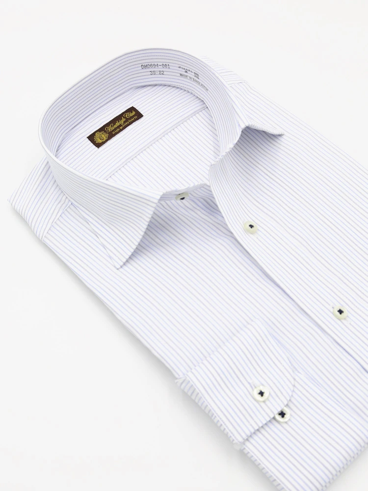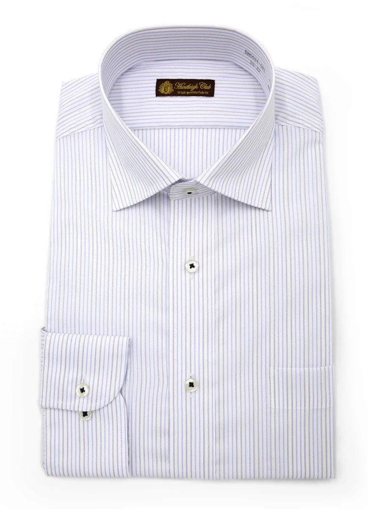 【形態安定】長袖 ワイシャツ セミワイド ストライプ ハントレークラブ 通年(サックス)