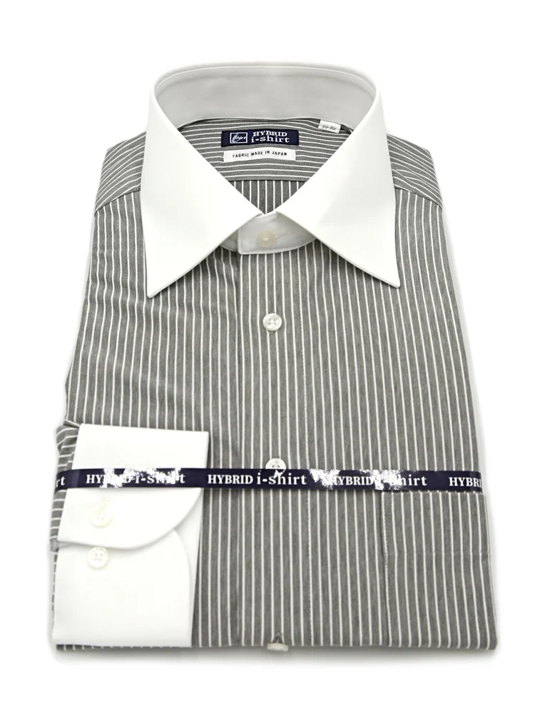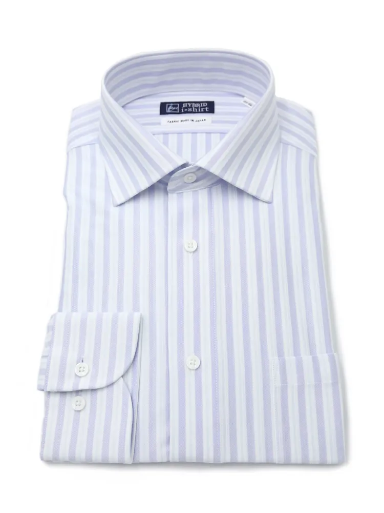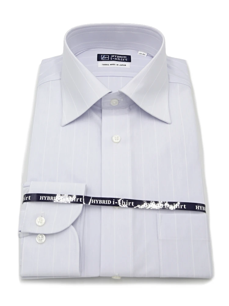 【ハイブリッドアイシャツ】長袖ワイシャツセミワイド形態安定ストレッチストライプ通年