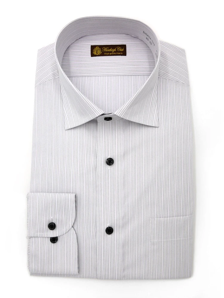 【ハイブリッドアイシャツ】長袖ワイシャツセミワイド形態安定ストレッチ杢調ワイドストライプ通年