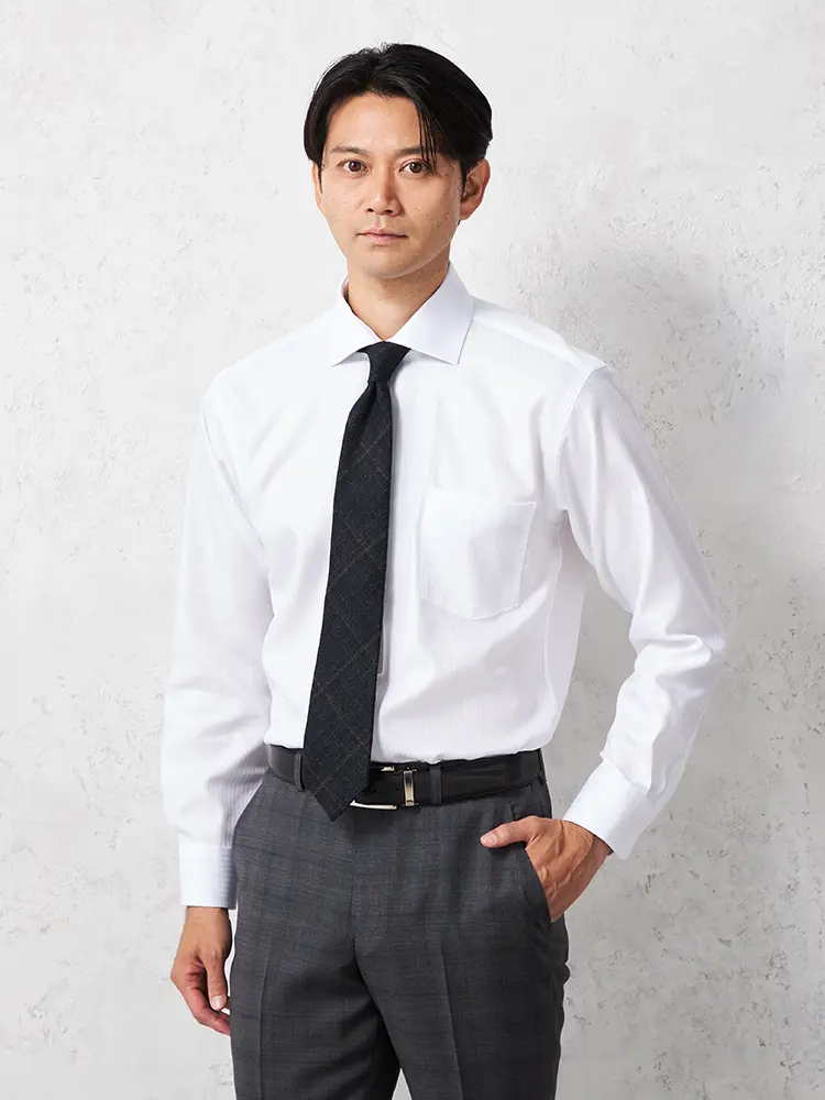 【綿100%】長袖ワイシャツワイドカラー織柄無地STOVEL&MASON通年