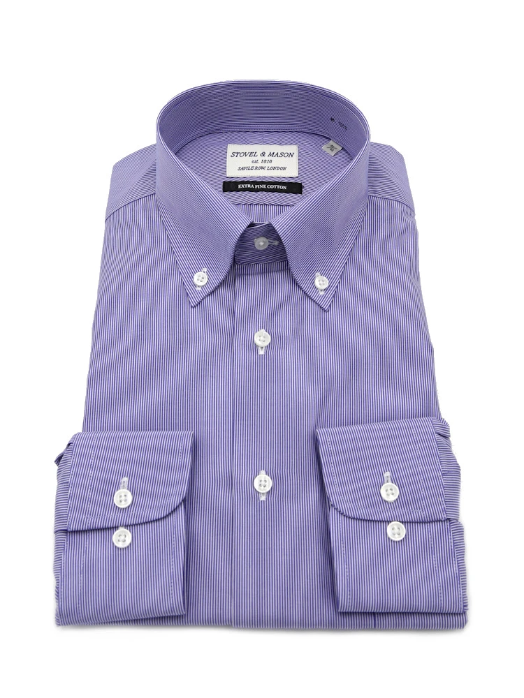 【綿100%】長袖 ワイシャツ ボタンダウン ストライプ STOVEL&MASON 通年