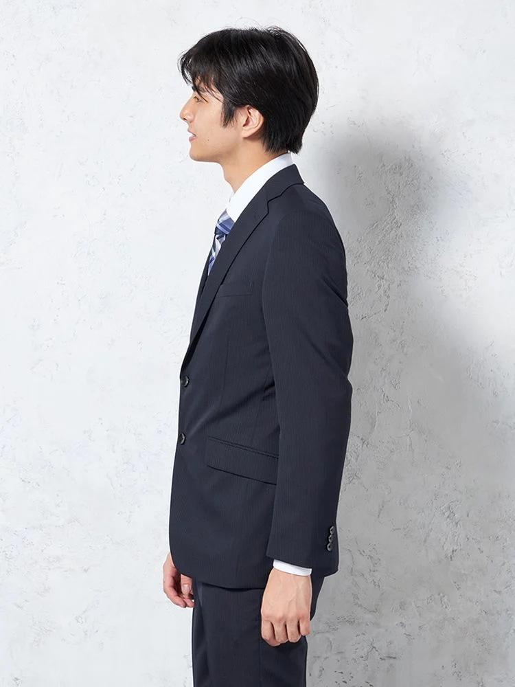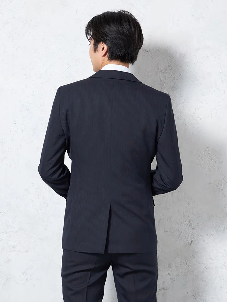 切り込みが1本のセンターベントデザインです。細身でスッキリとしたシルエットが特徴で、快適な着心地を提供します