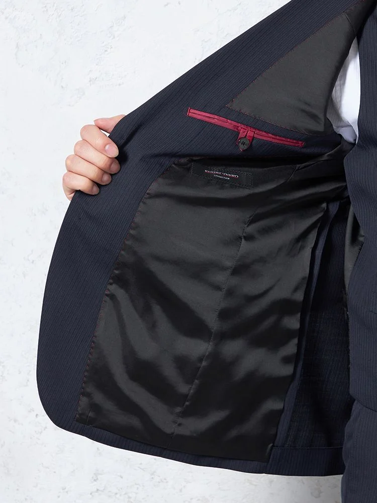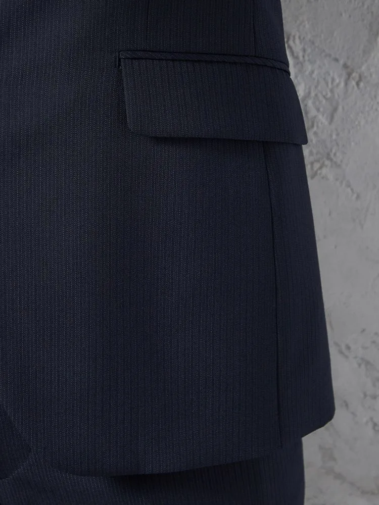 【上下ウォッシャブル】スリーピーススーツ2つボタン脚長シルエットネイビーシャドウストライプneroスリム通年【スリムデザイン】