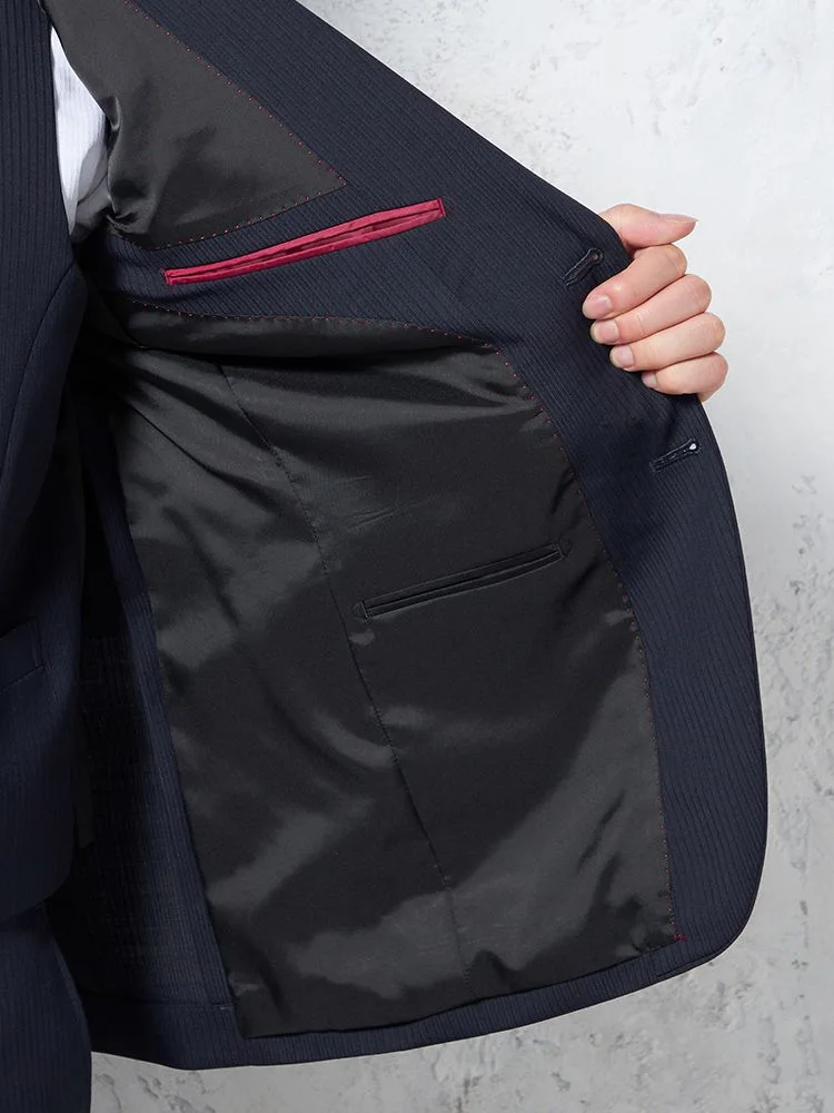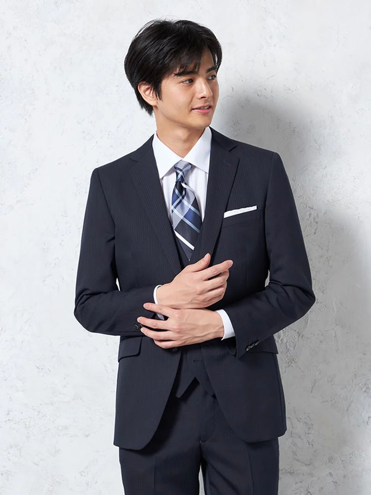 【即納】【WEB限定】スーツ2つボタンネイビーシャドウストライプ上下ウォッシャブル3シーズン対応
