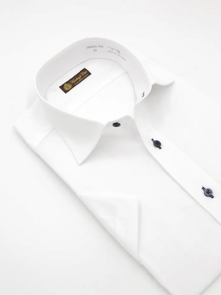 【形態安定】半袖 ワイシャツ セミワイド 白ドビー ハントレークラブ 春夏