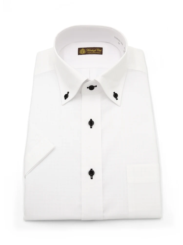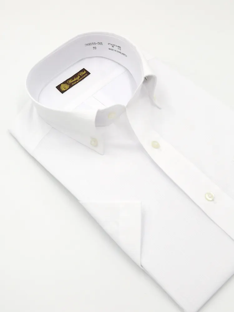 • ホワイト 【形態安定】半袖 ワイシャツ ボタンダウン 白ドビー 織柄無地 ハントレークラブ 春夏 1185769654