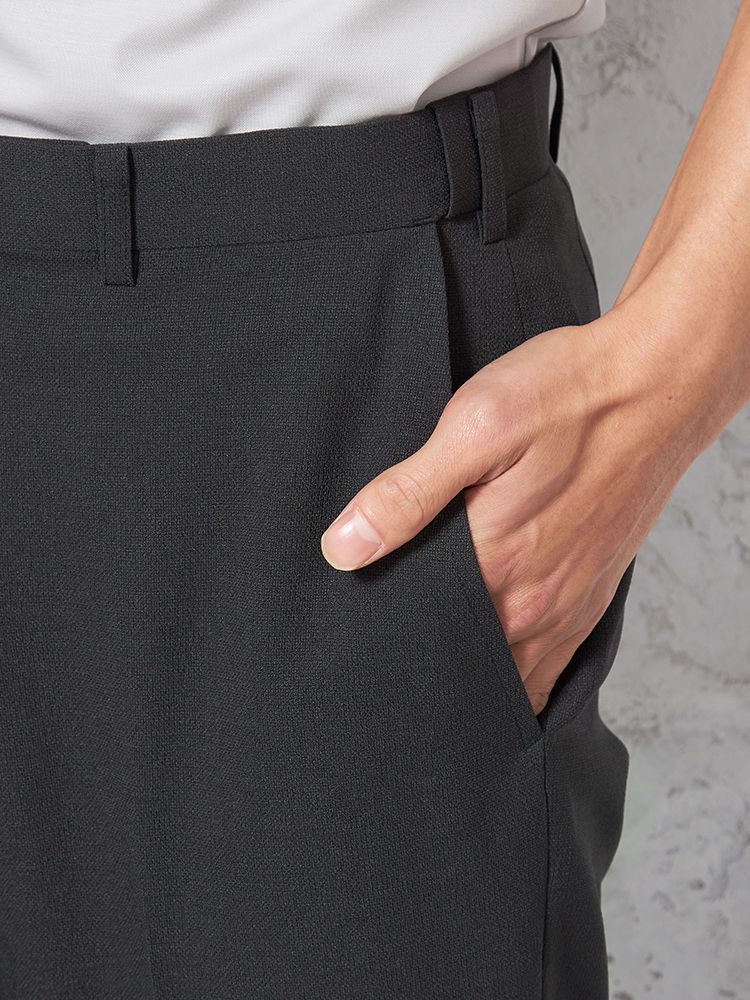 ストレッチやウォッシャブル機能に加え、表から見えづらいウエストゴム仕様(ウエストプラス仕様)により、快適に着用できます。