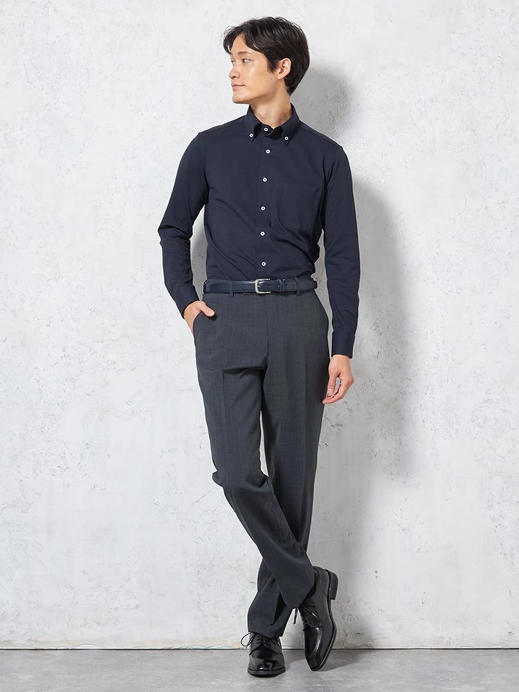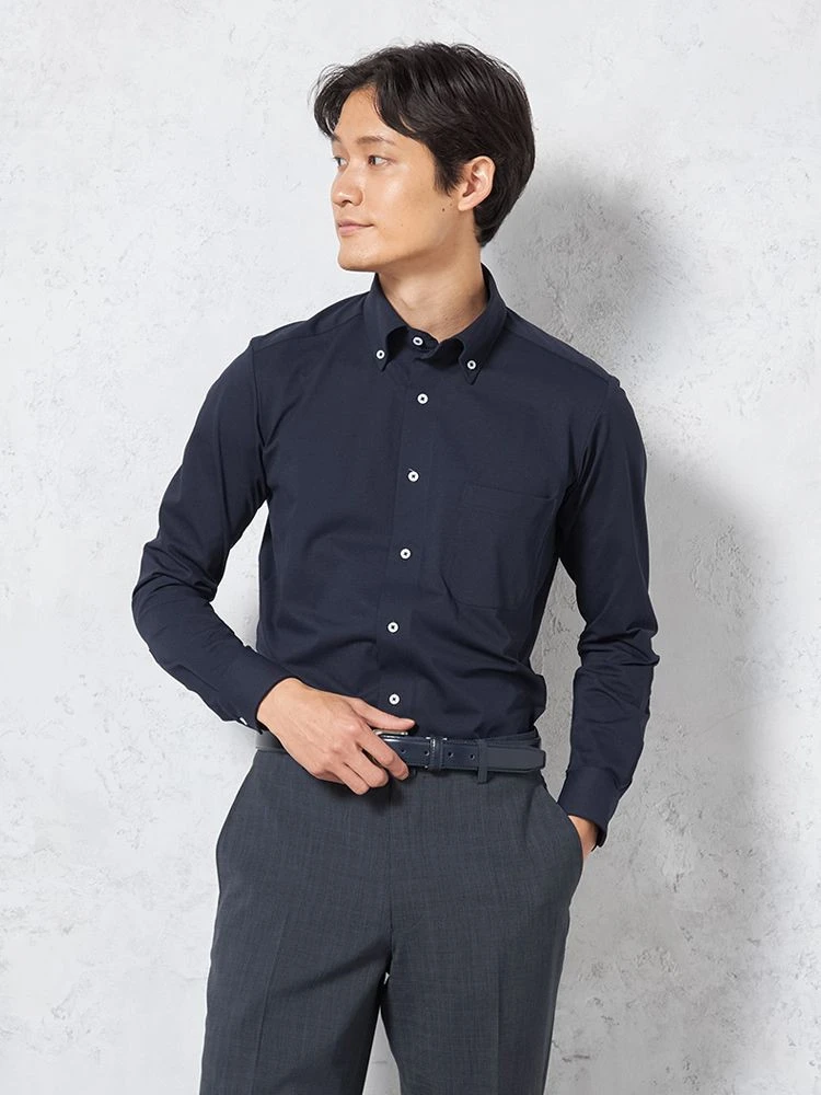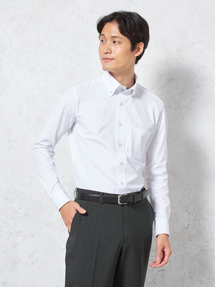 【形態安定】アイシャツ長袖ワイシャツボタンダウン織柄無地i-shirt通年