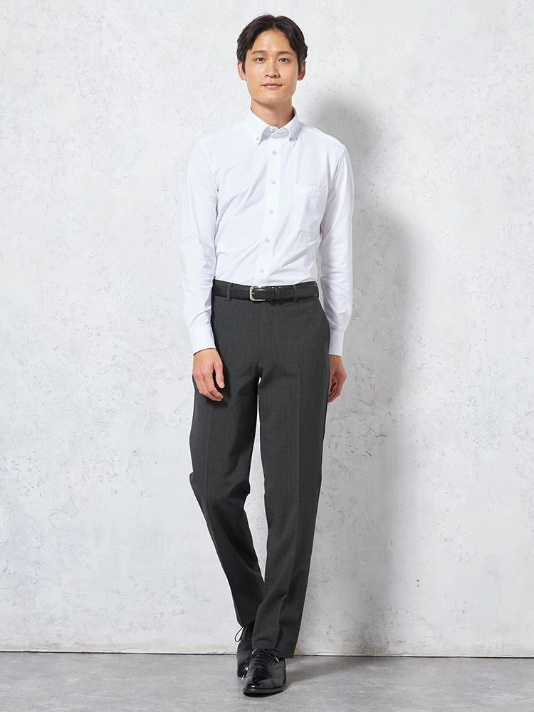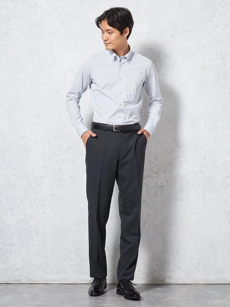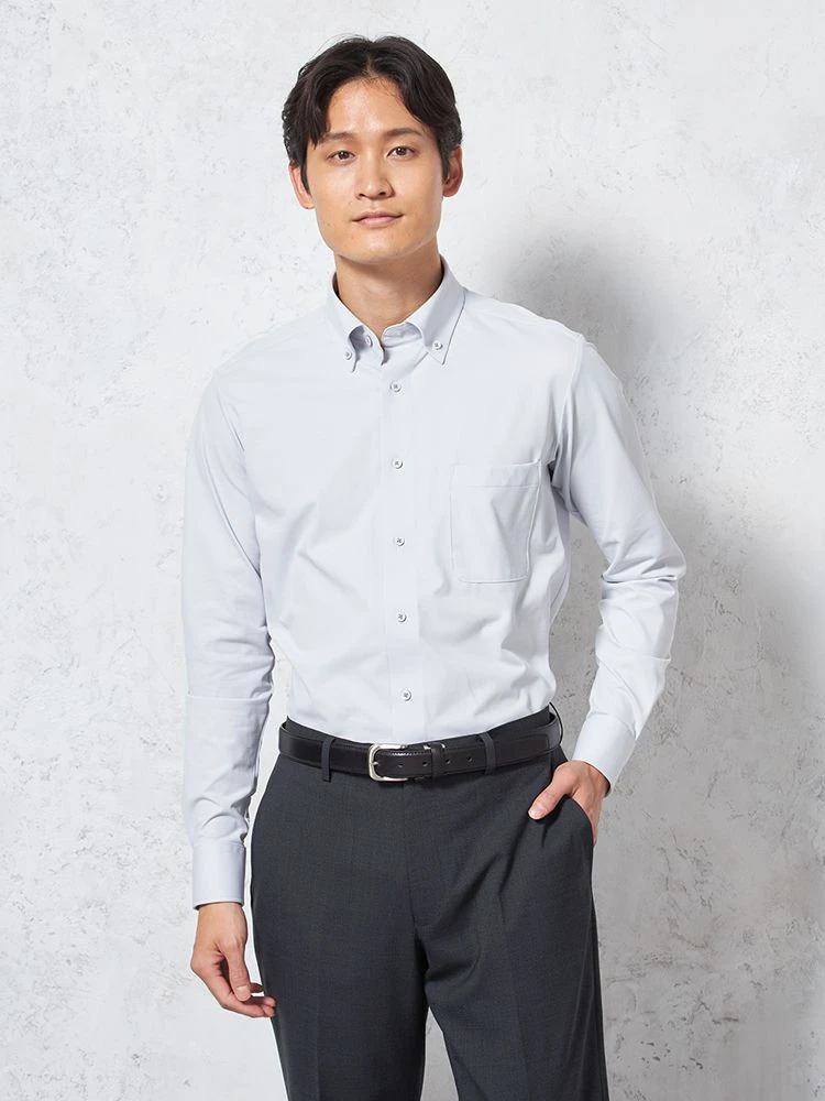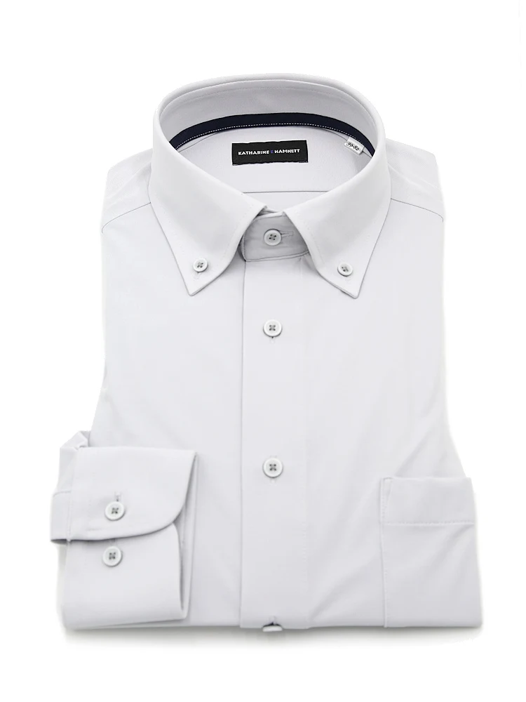 【KATHARINE E HAMNETT-キャサリン・イー・ハムネット-】長袖 ワイシャツ ボタンダウン 360°ストレッチ 吸水速乾 無地 通年(L.グレー)