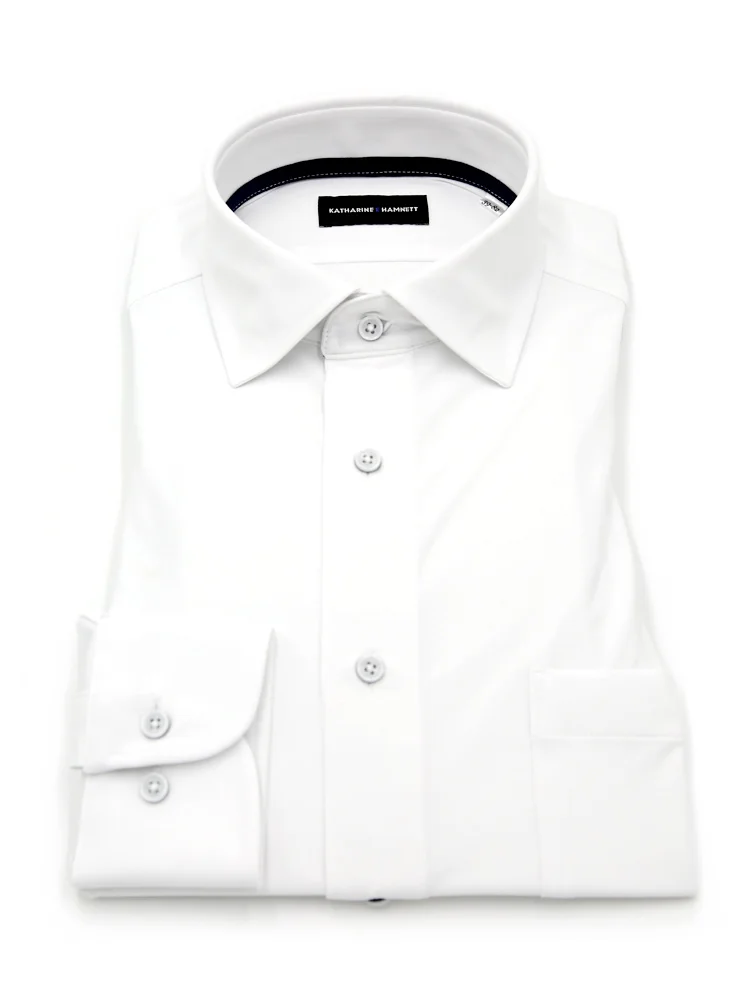 【KATHARINEEHAMNETT-キャサリン・イー・ハムネット-】長袖ワイシャツセミワイドクレリック360°ストレッチ吸水速乾無地通年