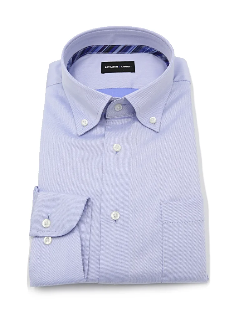 【KATHARINEEHAMNETT-キャサリン・イー・ハムネット-】長袖ワイシャツボタンダウンサックスツイル柄リサイクル素材使用通年