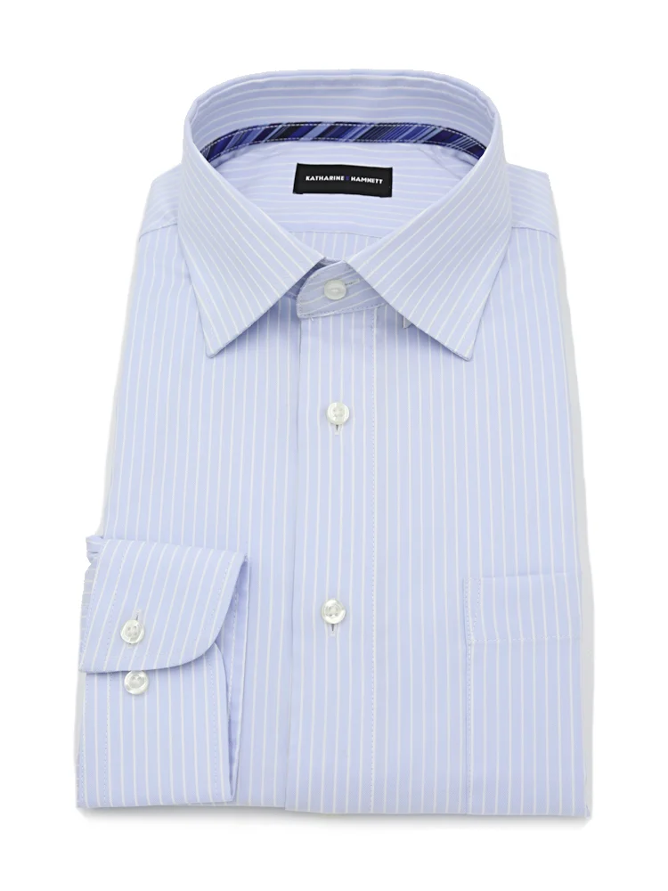 【KATHARINEEHAMNETT-キャサリン・イー・ハムネット-】長袖ワイシャツセミワイド360°ストレッチ吸水速乾ストライプ通年