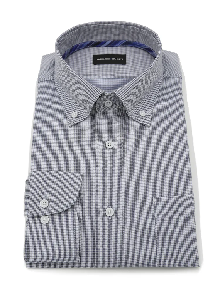 【KATHARINEEHAMNETT-キャサリン・イー・ハムネット-】長袖ワイシャツボタンダウン白ドビーチェック柄リサイクル素材使用通年