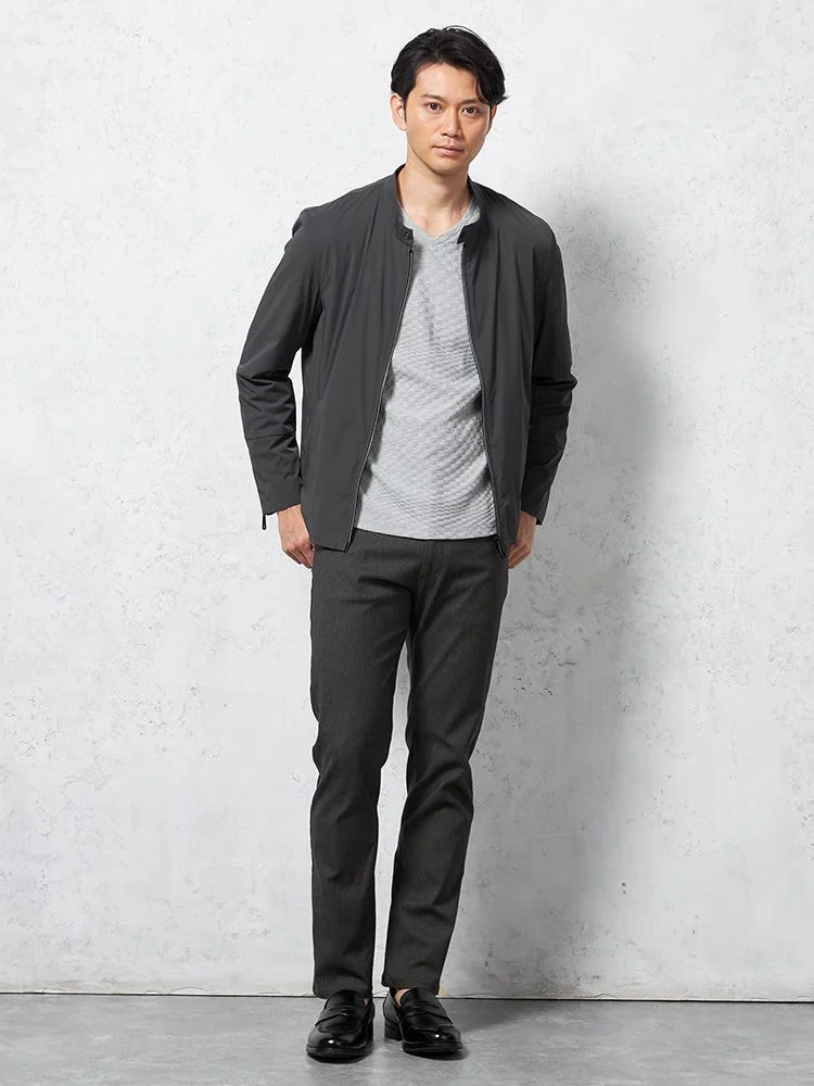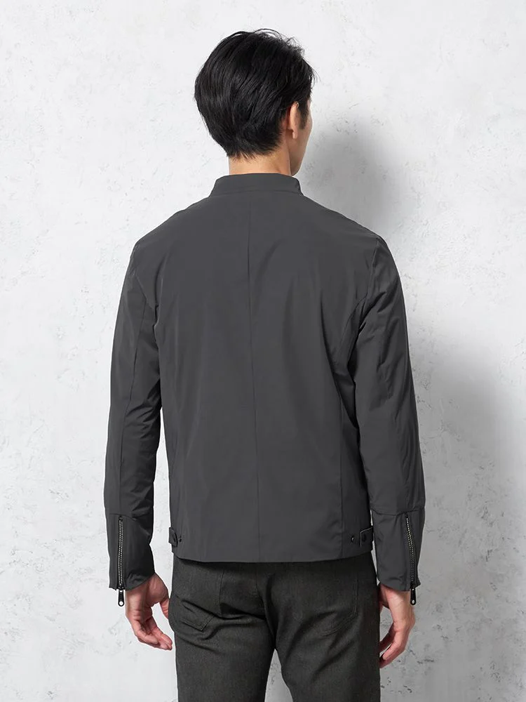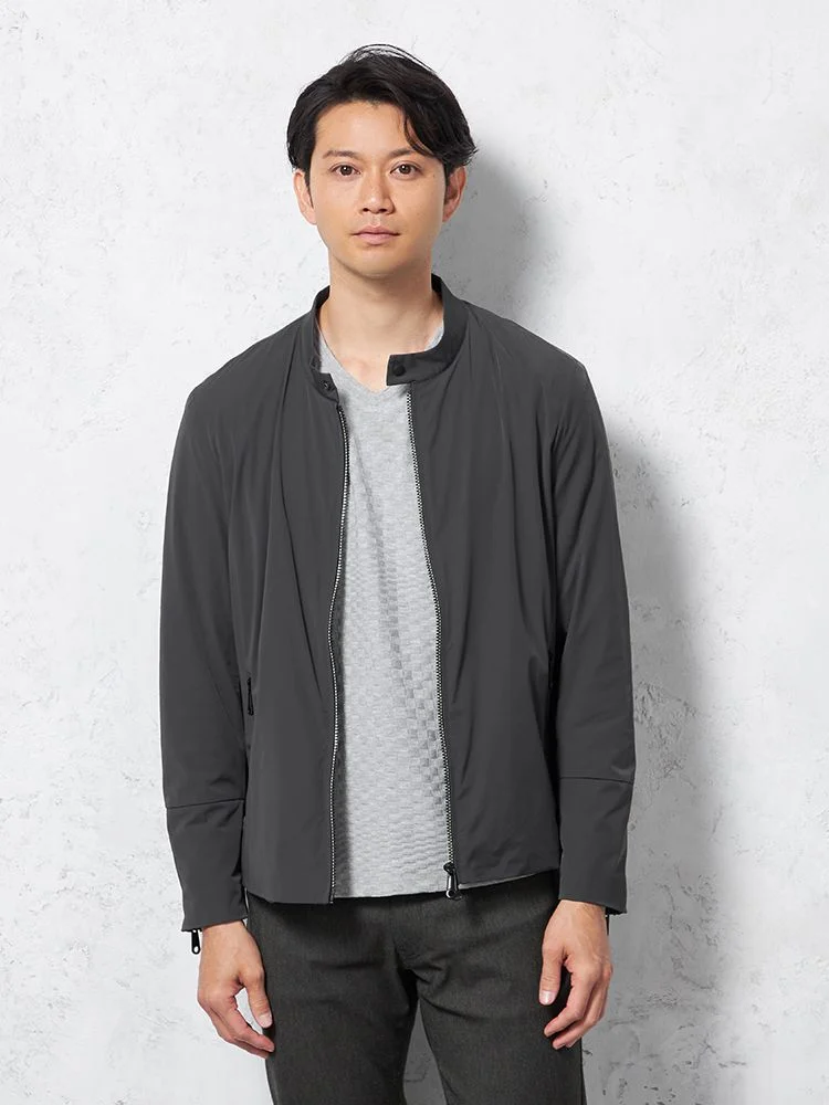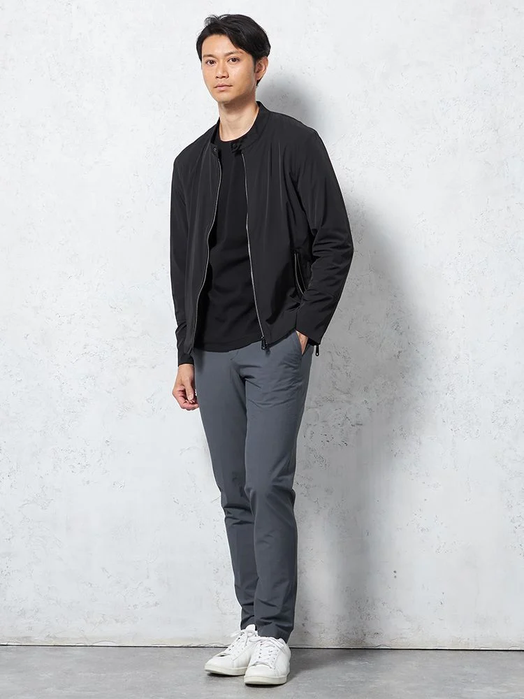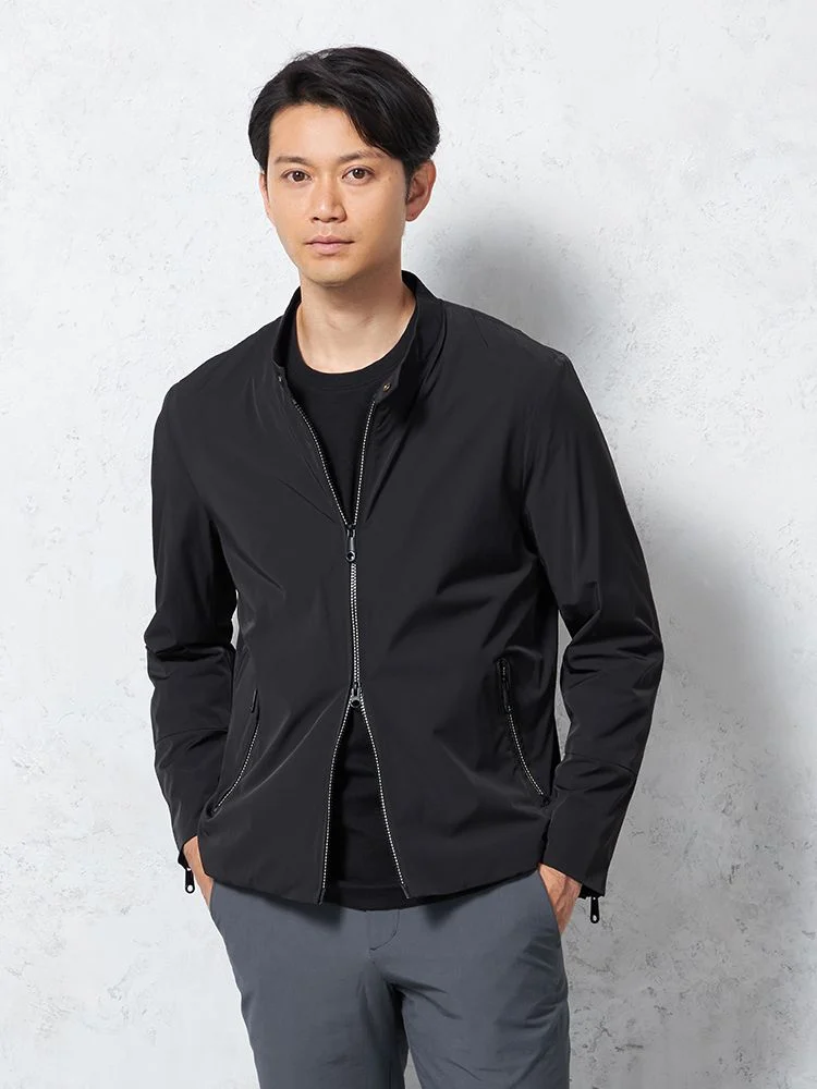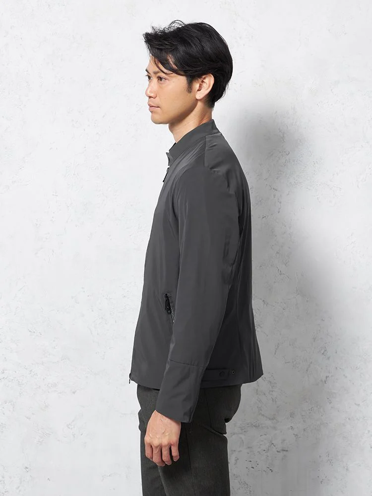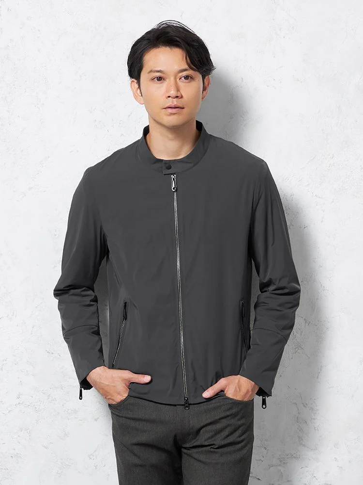 4Wayストレッチ素材でストレスフリーにに着用できるシングルライダースブルゾン。