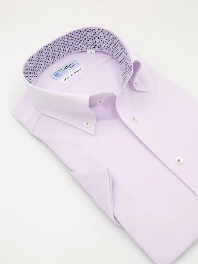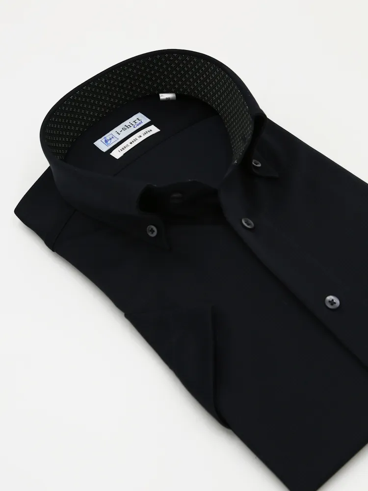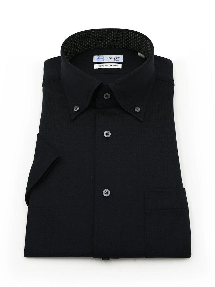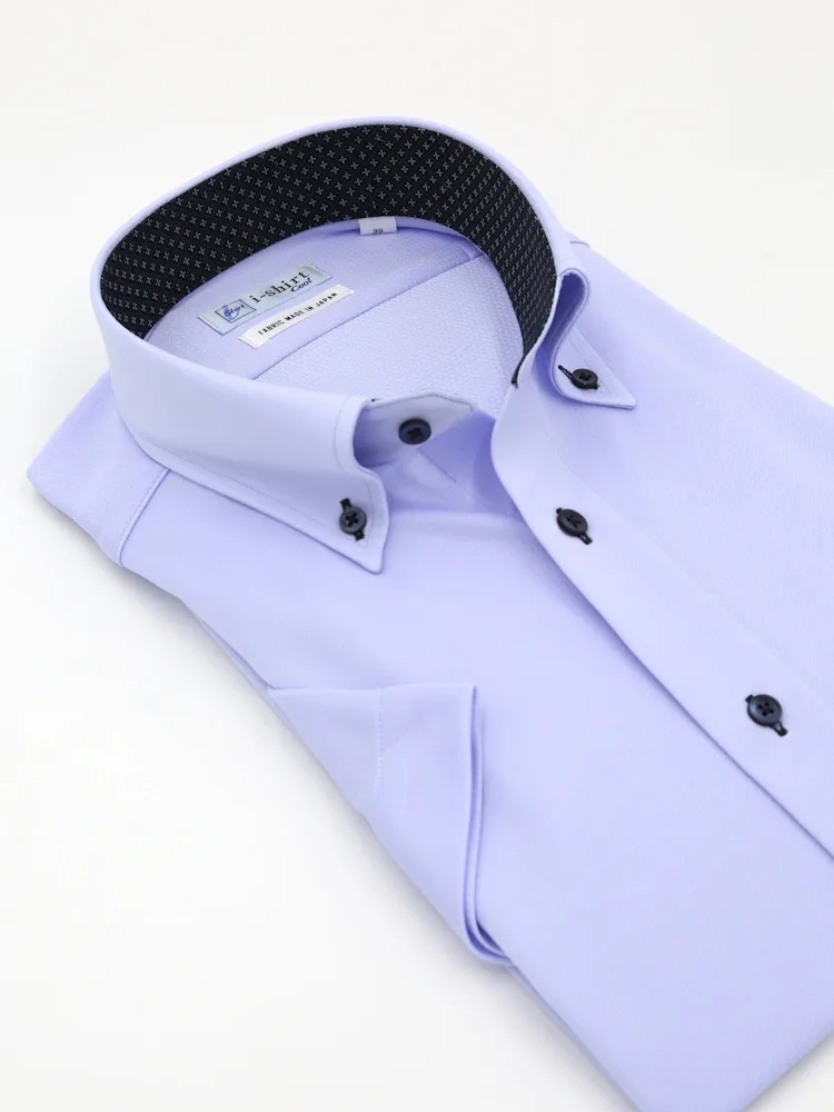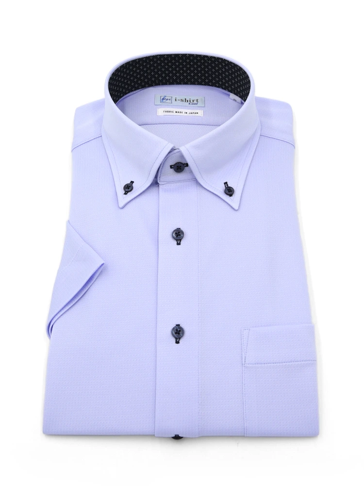 【完全ノーアイロン】半袖アイシャツ ボタンダウン【DRY AIR生地使用】通気性 チドリ 織柄無地 ワイシャツ i-shirt 春夏(ブルー)